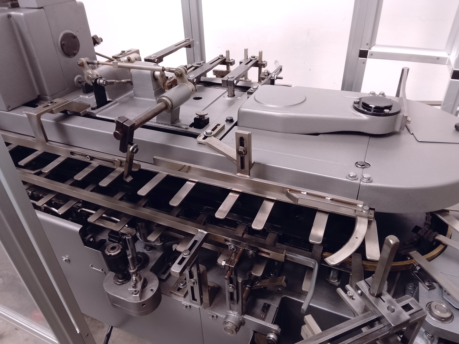 Macchina astucciatrice ad inserimento verticale dell’astuccio con possibilità di cambio rapido di formato.