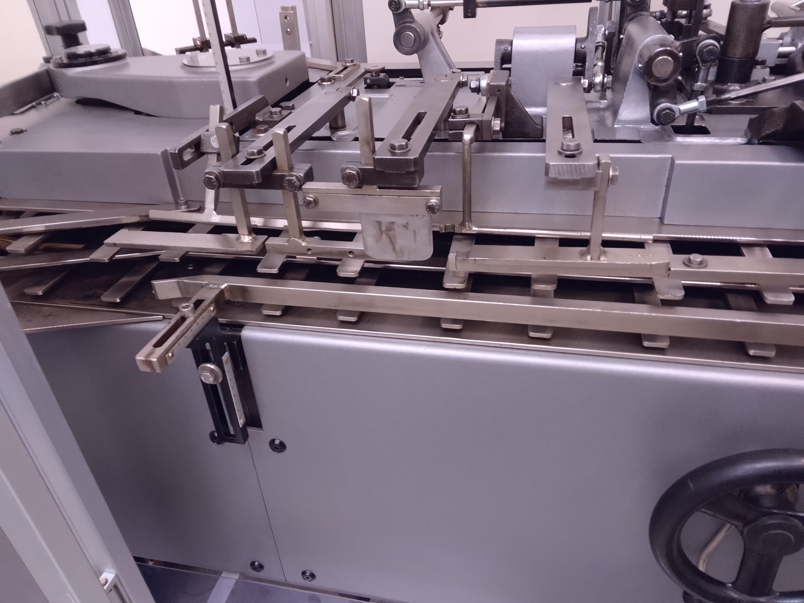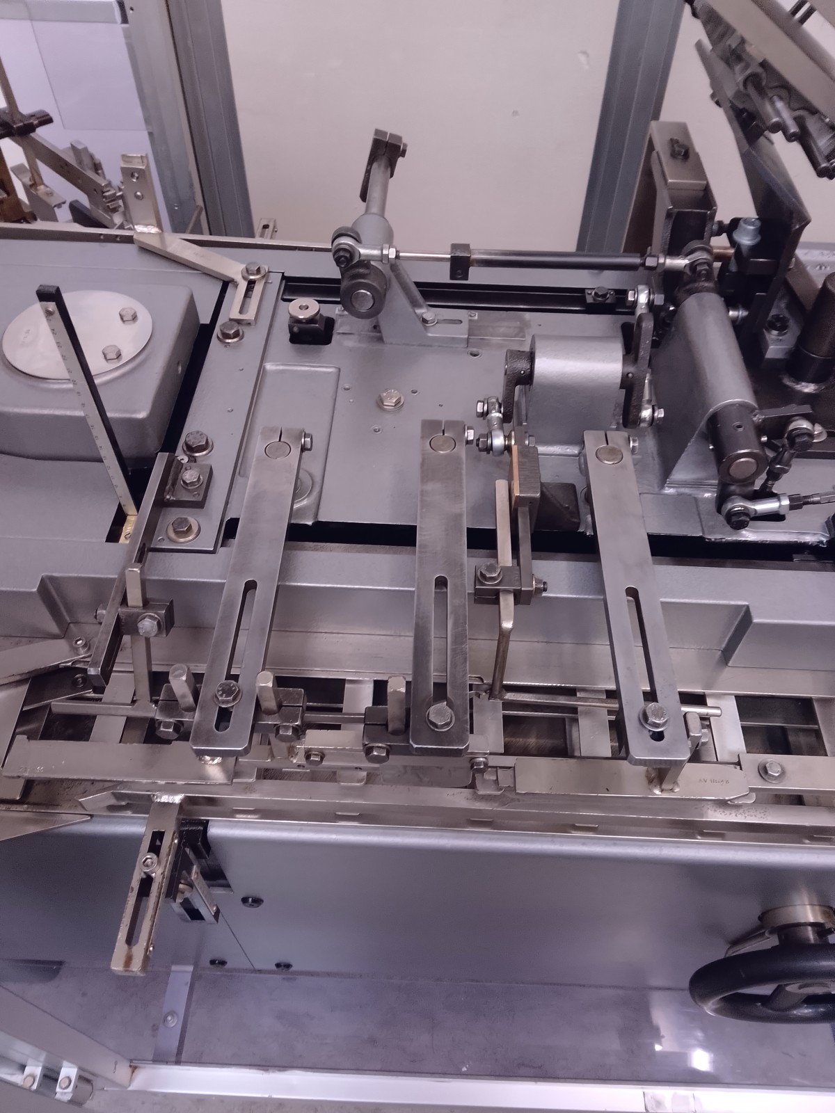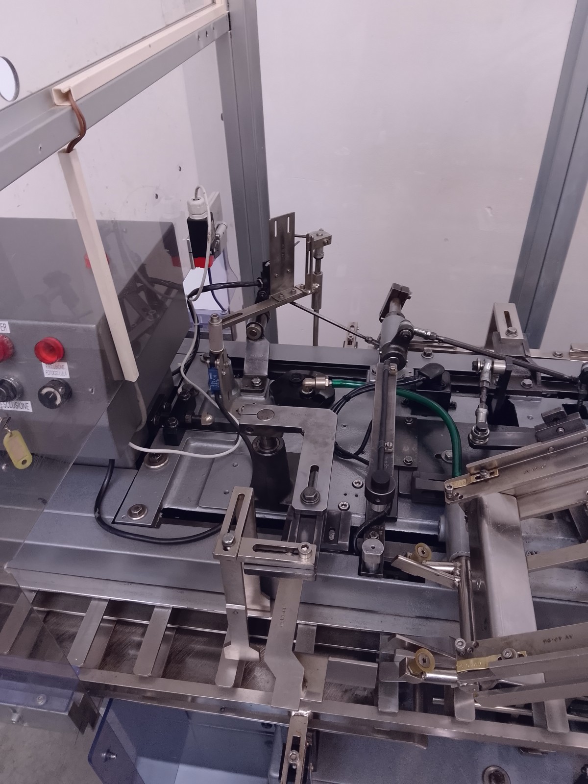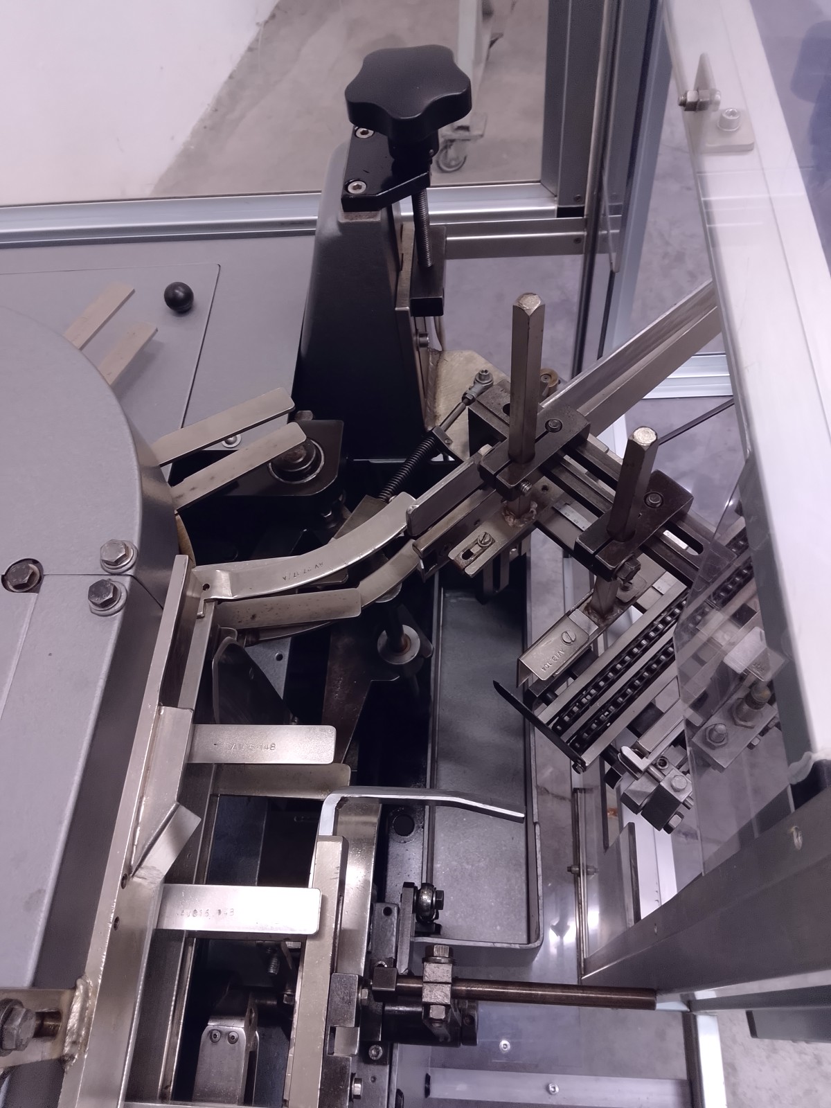 Macchina astucciatrice automatica a movimenti alternati e ad inserimento verticale dell’astuccio con possibilità di cambio rapido di formato.