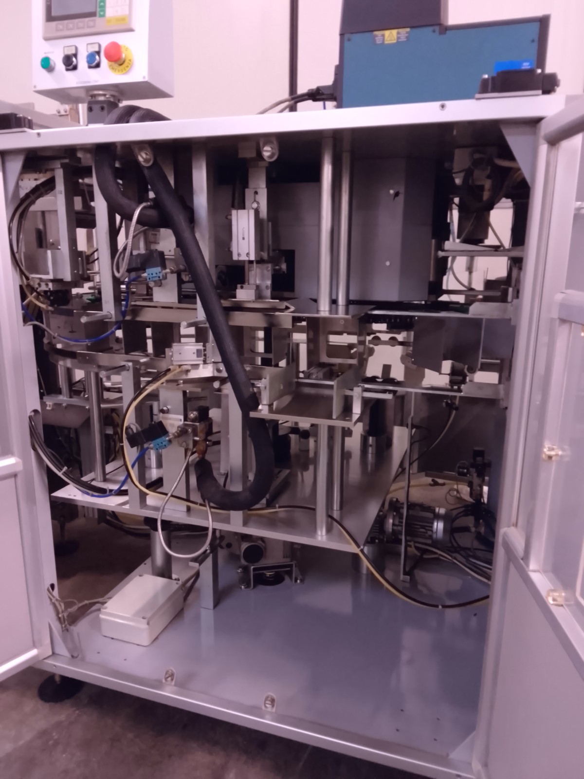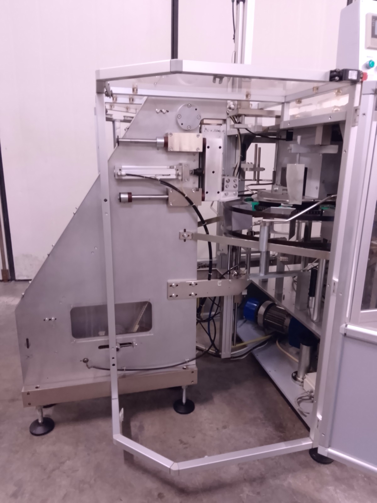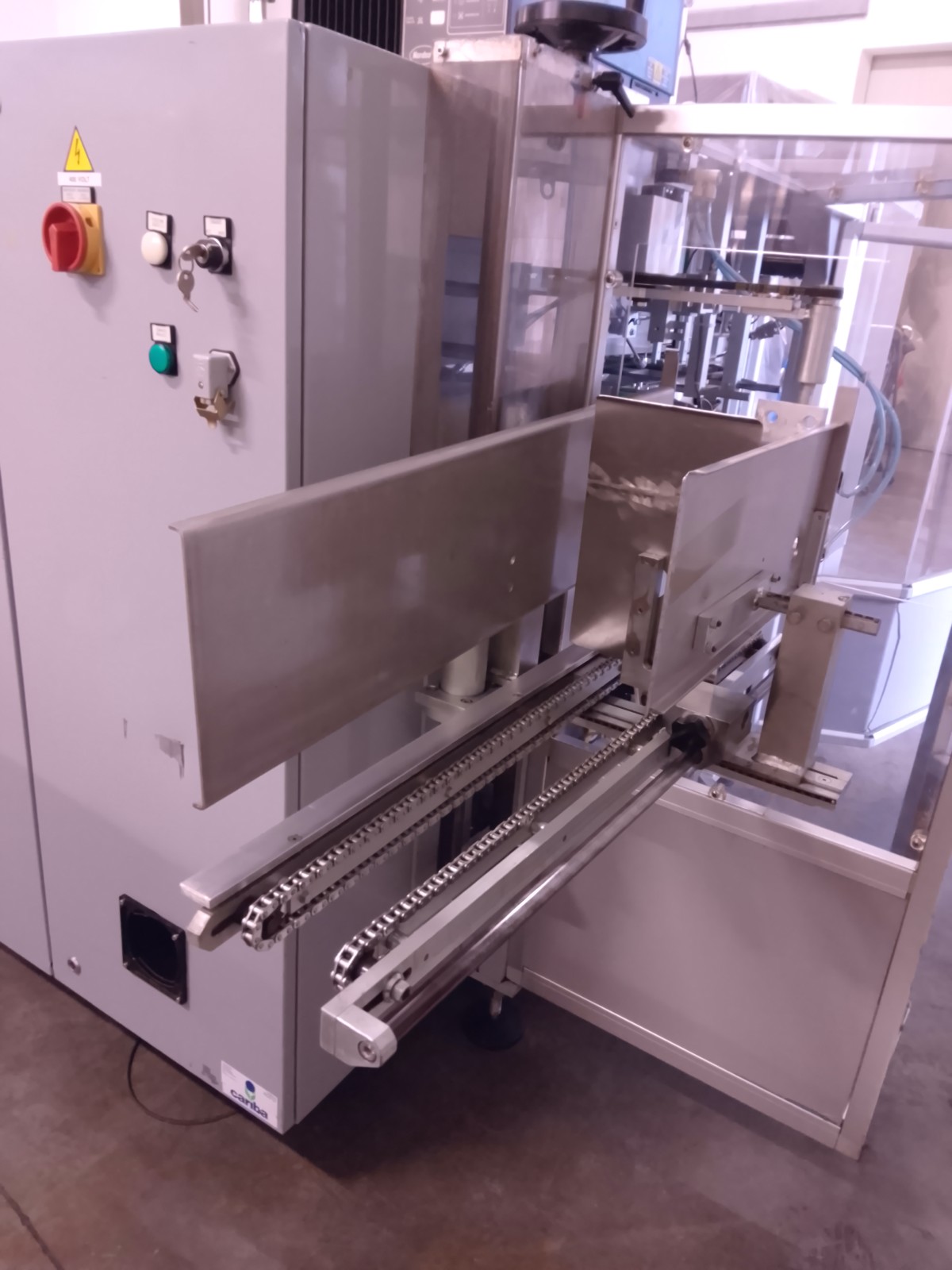 Il macchinario è dotato di dispositivi per il controllo della presenza del prodotto, dell’astuccio e del prodotto nella confezione, protezioni in plexiglass con dispositivi di sicurezza, pulsanti di emergenza in posizioni di massima accessibilità, quadro comandi con visualizzazione degli arresti. Macchinario adatto al confezionamento dei più svariati prodotti sia singoli che multipli, impilabili e non. Di dimensioni estremamente compatte e con una efficienza elevatissima, questo macchinario è ideale da inserire in ogni linea di confezionamento di blister, strips, cassonetti, flaconi, buste, tubetti rigidi o schiacciabili, sacchetti, saponi ed altri prodotti di vario genere. Montato su piedini regolabili in altezza. La movimentazione avviene tramite cassetti dedicati per ottimizzare il controllo dell’astuccio e ridurre i rischi di danneggiamento. La chiusura può essere ad incastro, con colla a caldo oppure combinata incastro-colla. Macchinario completo di incollatore Nordson modello 3100V per la chiusura degli astucci.