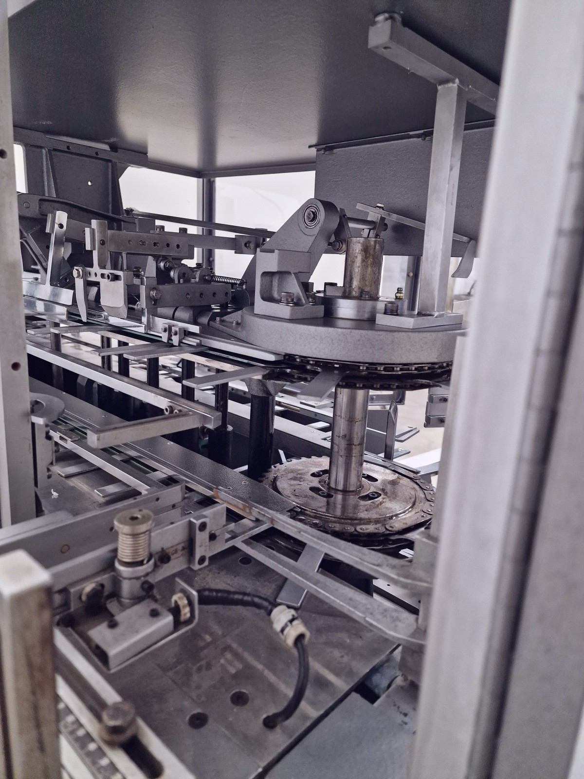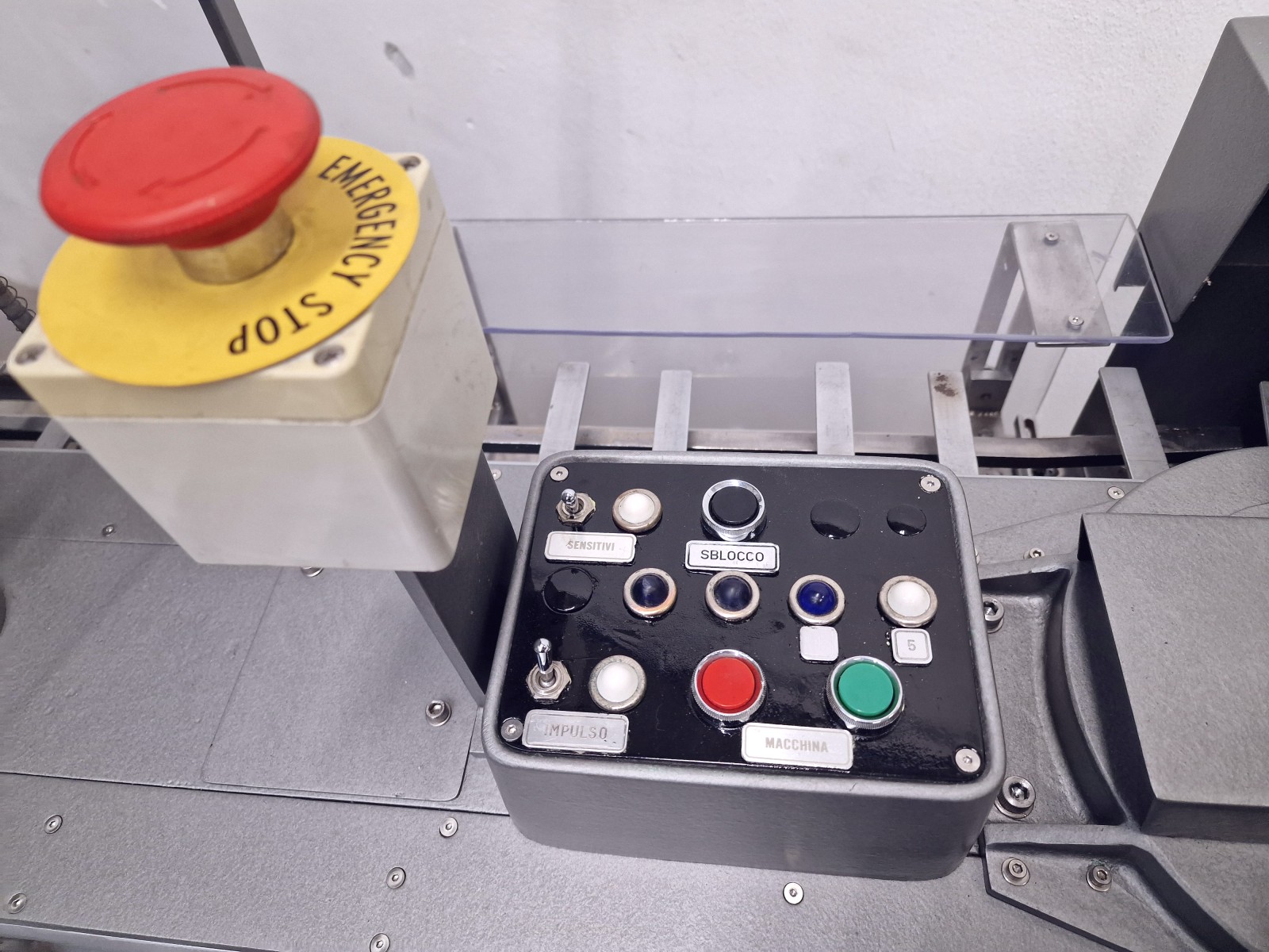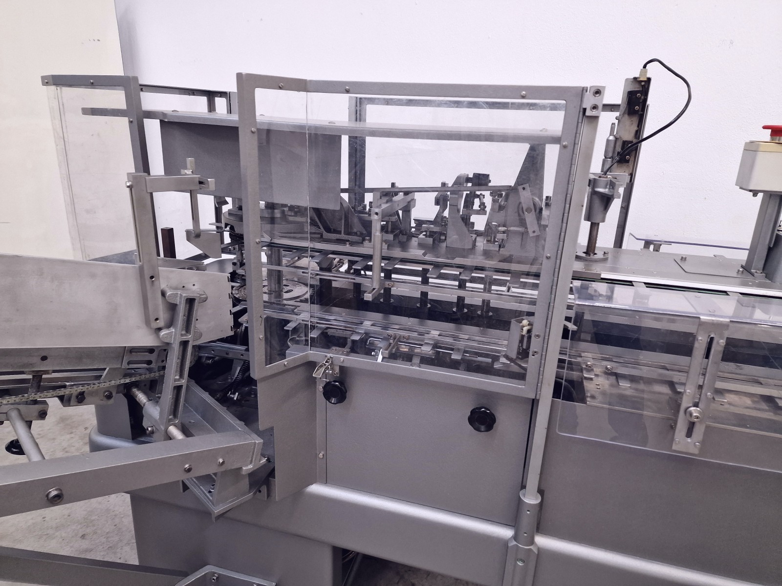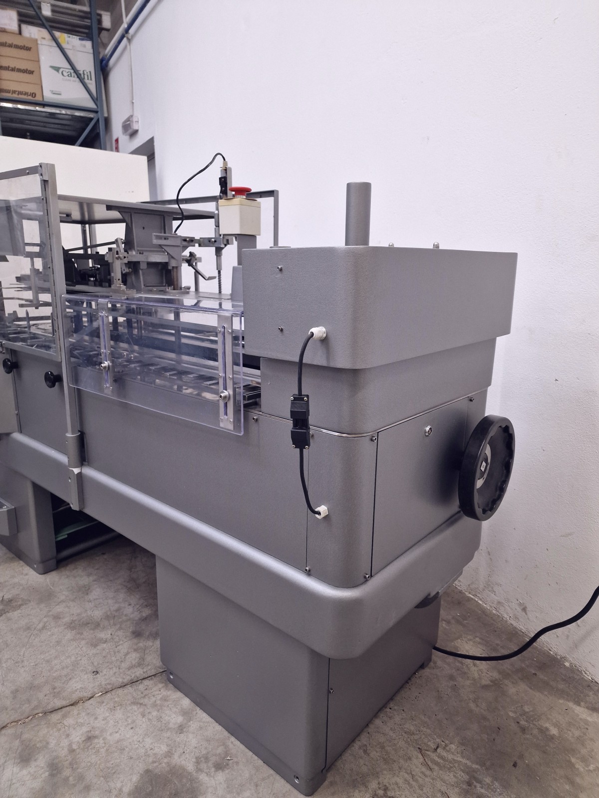 Il macchinario è dotato di dispositivi per il controllo della presenza del prodotto, dell’astuccio e del prodotto nella confezione. Sicurezza elettrica sullo spingitore del prodotto e protezioni in plexiglass con dispositivi di sicurezza. Pulsanti di emergenza in posizioni di massima accessibilità e quadro comandi con visualizzazione degli arresti. La formatura degli astucci viene effettuata dall’azione combinata di una lama e il controllo del vuoto. Cambio formati facile e veloce.