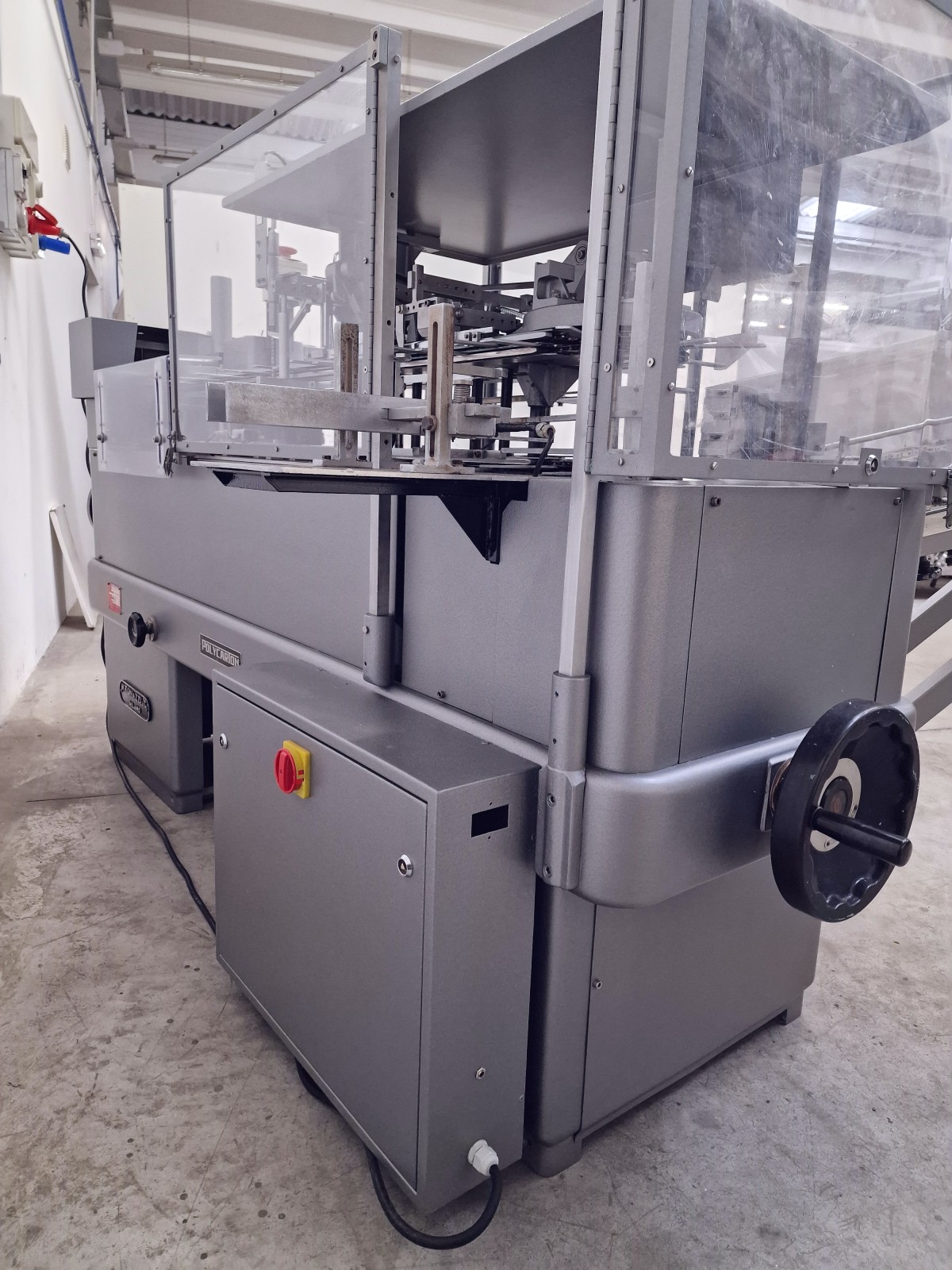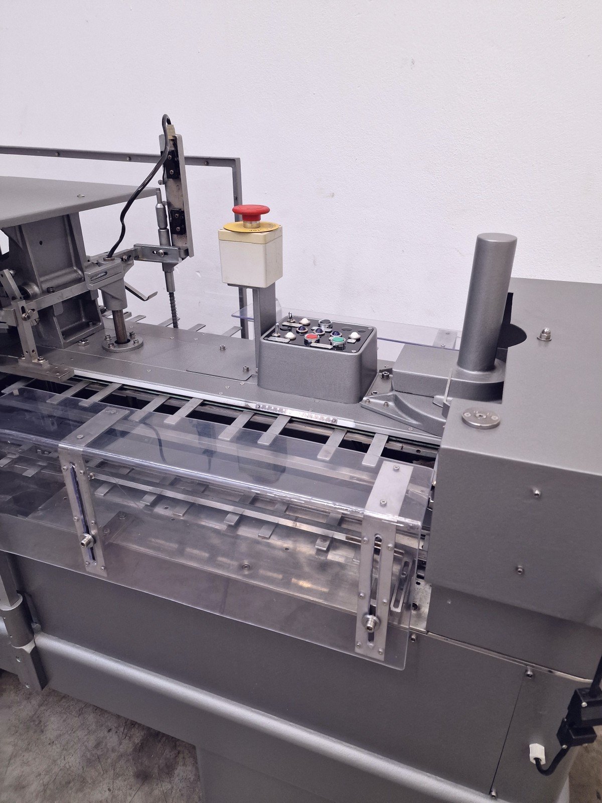 Macchina astucciatrice a inserimento verticale dell’astuccio con cambio rapido di formato.