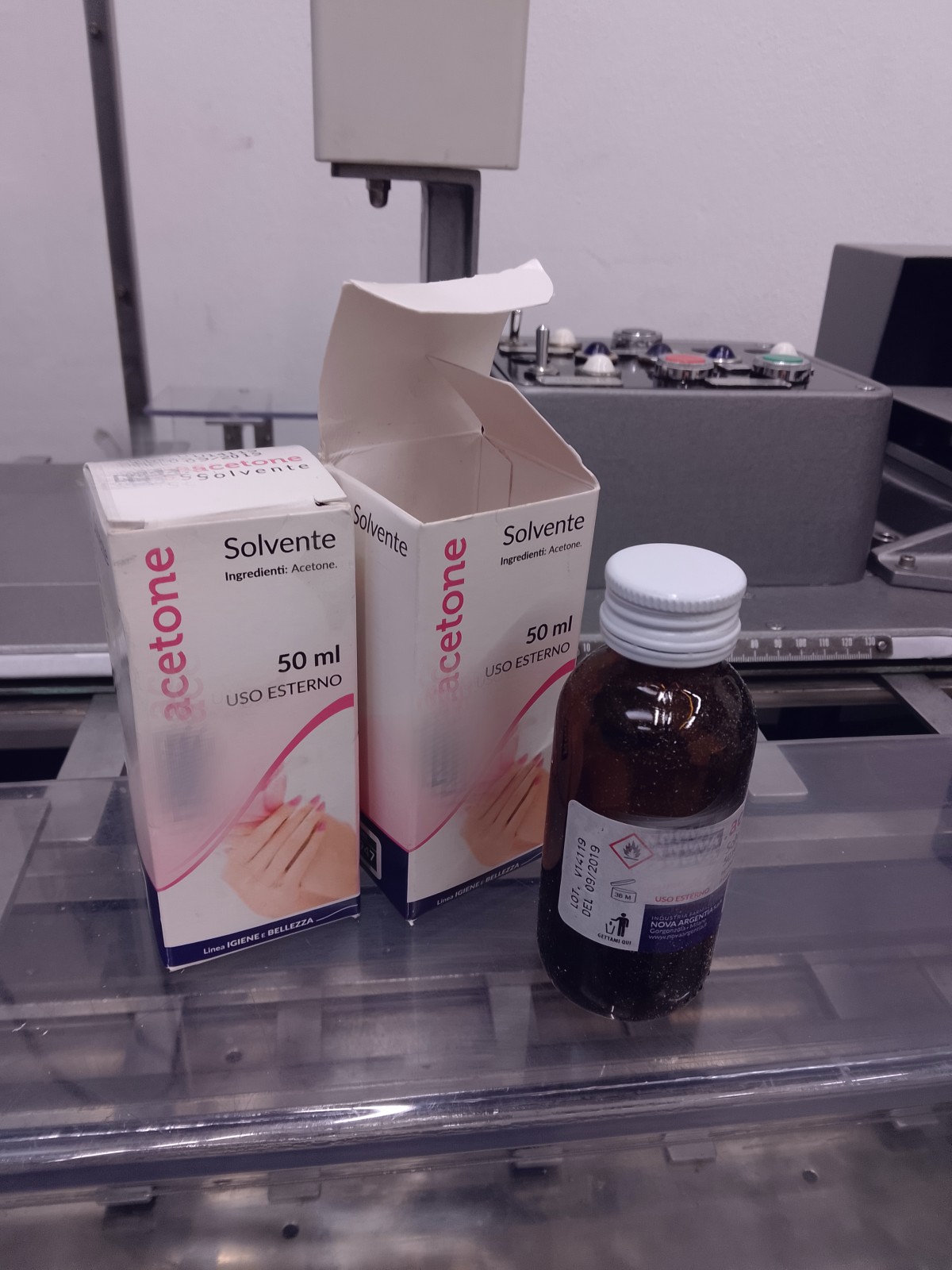 Ultimo prodotto lavorato: flacone, dimensioni: 35 x 35 x 95 h mm