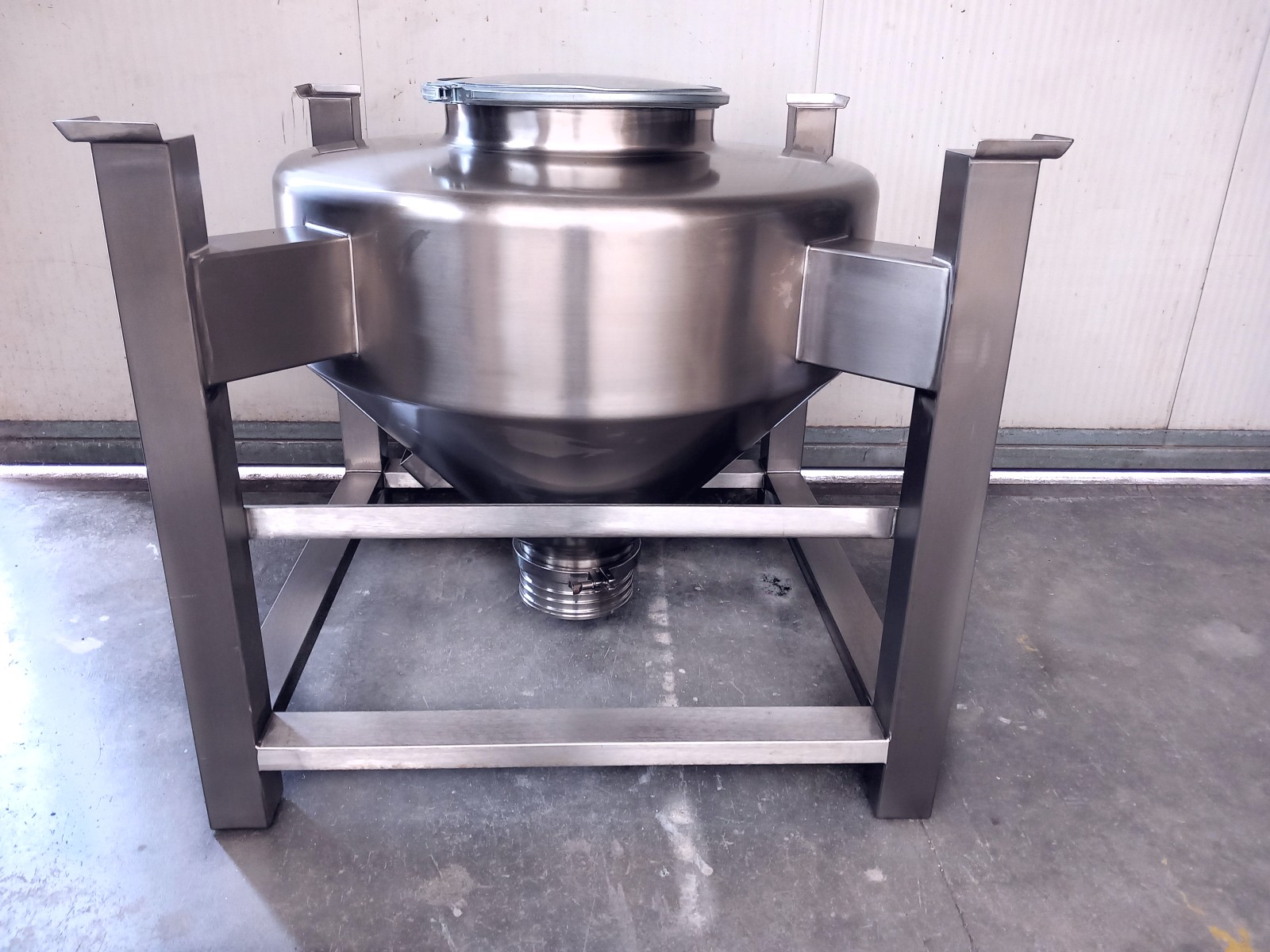 Questo serbatoio è realizzato in acciaio inossidabile, garantendo igiene e resistenza alla corrosione. La sua forma parallelepipeda con angoli arrotondati e base a tramoggia facilita lo svuotamento completo del contenuto, riducendo al minimo i residui, specialmente per prodotti viscosi o granulari. Serbatoio ideale per lo stoccaggio ed il trasporto di sostanze liquide come acqua, benzina, vino, olio, polveri, granuli e prodotti chimici in genere. Il serbatoio è idoneo al contatto alimentare. Progettata secondo elevati standard ingegneristici, la macchina fornisce all’utente un elevato grado di qualità ed affidabilità, garantendo il miglior risultato possibile in termini di purezza del prodotto. Il serbatoio per sua naturale propensione si integra nei processi del settore farmaceutico e chimico. Posizionato su struttura carrellata.