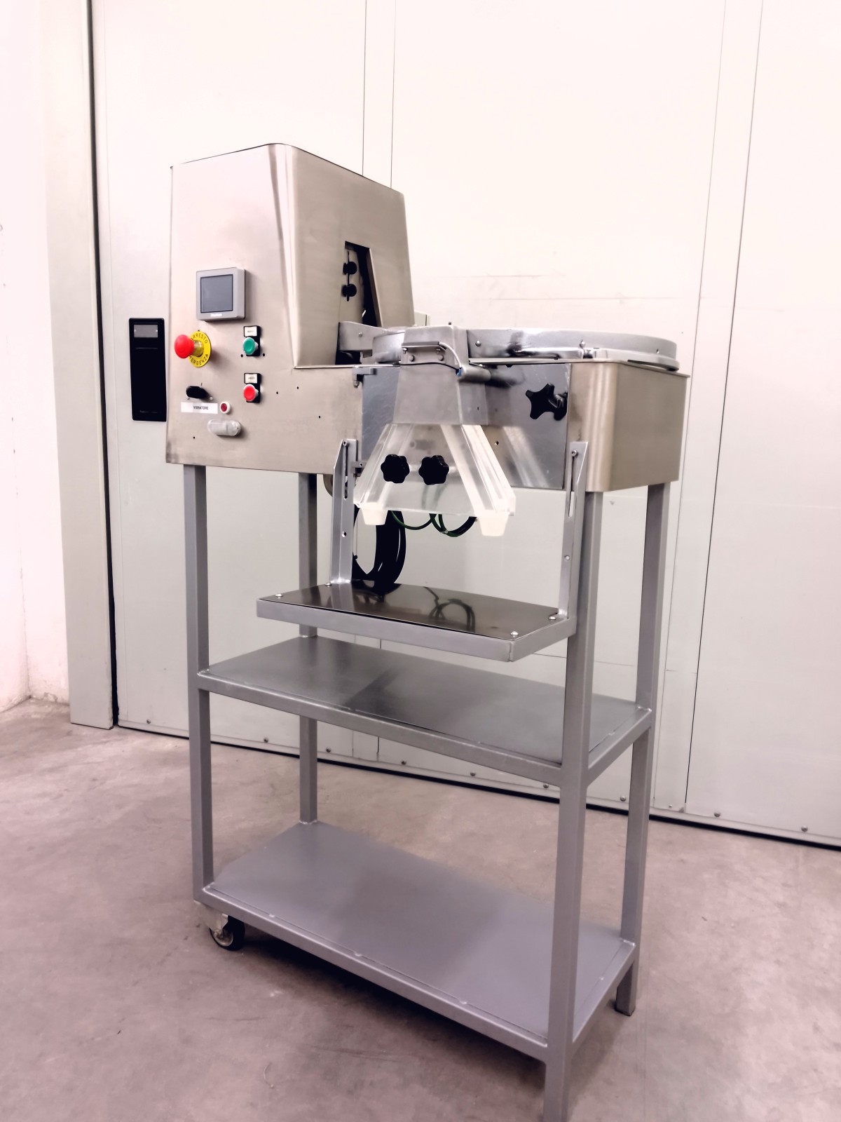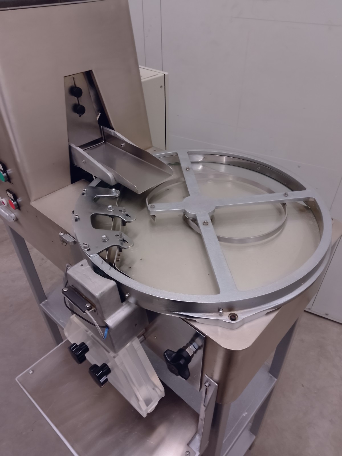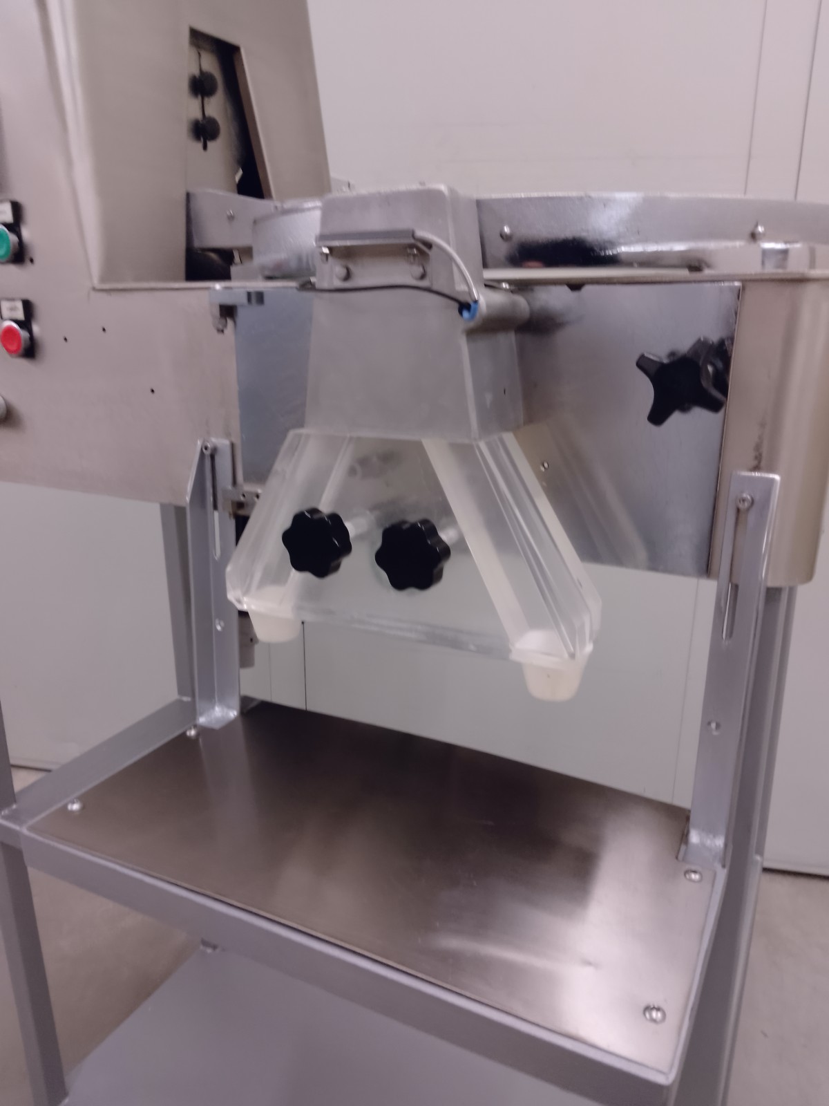 La contatrice KING offre un metodo estremamente versatile e preciso di conteggio per vari tipi di compresse rivestite e non, capsule, capsule di gelatina dure e morbide. La macchina è altamente adattabile, rapida da installare e pulita, con un design eccellente. La tramoggia contiene le pastiglie sfuse con una piastra regolabile in uscita per consentire il passaggio di pastiglie di varie dimensioni. Il prodotto si muove lungo lo scivolo per vibrazione e cade su un piatto rotante in vetro azionato da un motoriduttore. Questo piatto rotante trasporta le pastiglie in senso orario facendo deviare i prodotti verso l’esterno in un’unica linea attraverso delle guide, montate vicino al vetro, fino a raggiungere la disposizione del piatto di prelievo e uscita nella parte anteriore della macchina. All’uscita è montata una fotocellula e un gruppo sorgente luminosa che è posizionato in modo tale che un’unica fila di pastiglie cada singolarmente, interrompendo il fascio luminoso in caduta, facendole così registrare sul contatore elettronico. Le compresse quindi cadono oltre un meccanismo a lembo che si ribalta dopo che è stato raggiunto un conteggio preselezionato dirigendo le compresse in un altro contenitore. Questa configurazione consente il riempimento di contenitori separati. Nella posizione di uscita finale sono montati due imbuti di uscita in plastica che convogliano il prodotto nei contenitori. Un ripiano regolabile è montato per soddisfare le varie altezze del contenitore.