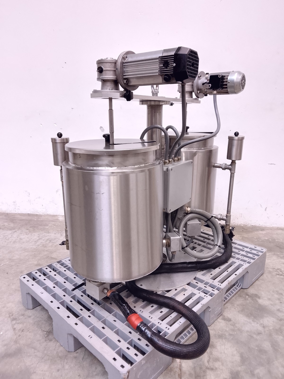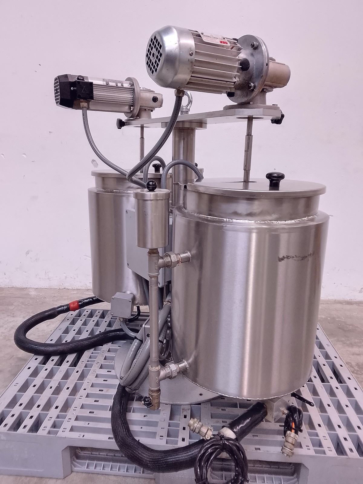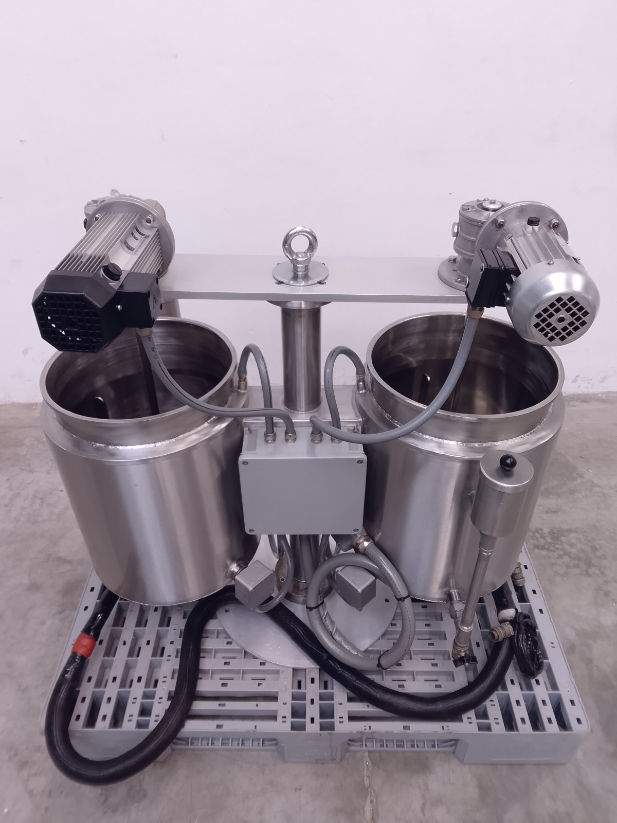 Il dissolutore è composto da un doppio serbatoio in acciaio inox, dotato di agitatore a pale per garantire un’efficace miscelazione. Progettato secondo elevati standard ingegneristici, assicura affidabilità e qualità per mantenere la purezza del prodotto. È termicamente isolato e presenta una robusta struttura portante per una stabilità ottimale. Il sistema di riscaldamento della camicia ad olio consente un controllo preciso della temperatura durante il processo di dissoluzione.