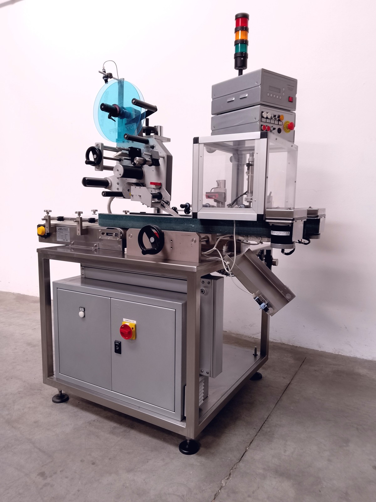 Il sistema di etichettatura automatico è stato ideato, progettato e prodotto per l’integrazione su una linea di produzione. Questa etichettatrice può applicare etichette con una larghezza massima di 140 mm e funziona in direzione sinistra. Il macchinario è progettato per garantire elevati standard di qualità, sicurezza e produttività, rendendolo una scelta ideale per le aziende che cercano efficienza nelle operazioni di confezionamento.