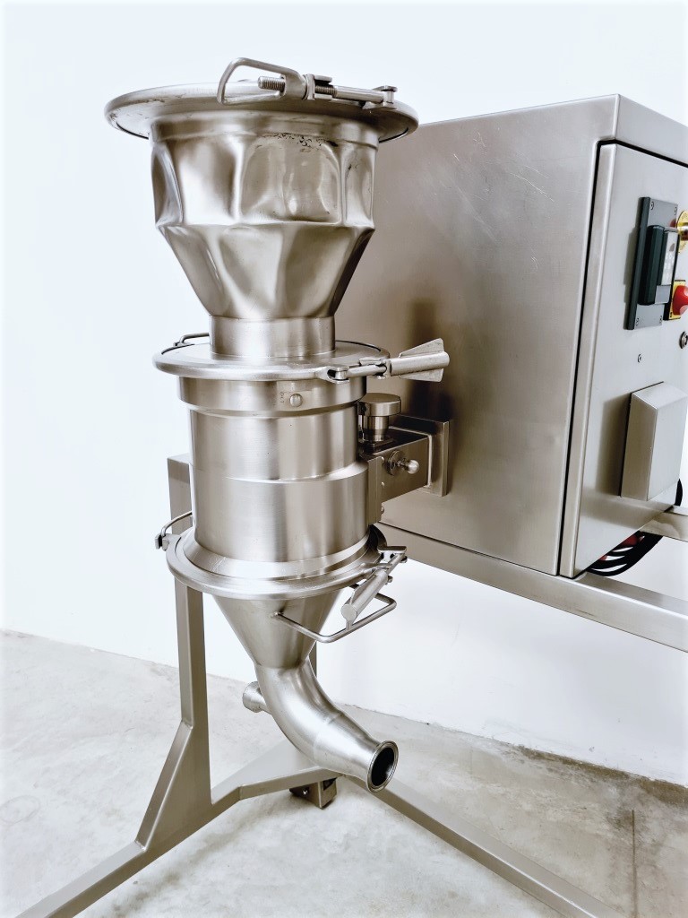 Il mulino è costituito dalla testa di fresatura, un setaccio conico e il rotore. Il movimento rotatorio del rotore fa fluire il prodotto attraverso il setaccio, adatto per la disagglomerazione ed il trattamento di polveri secche e umide. Realizzato in acciaio inossidabile 316L.