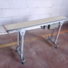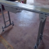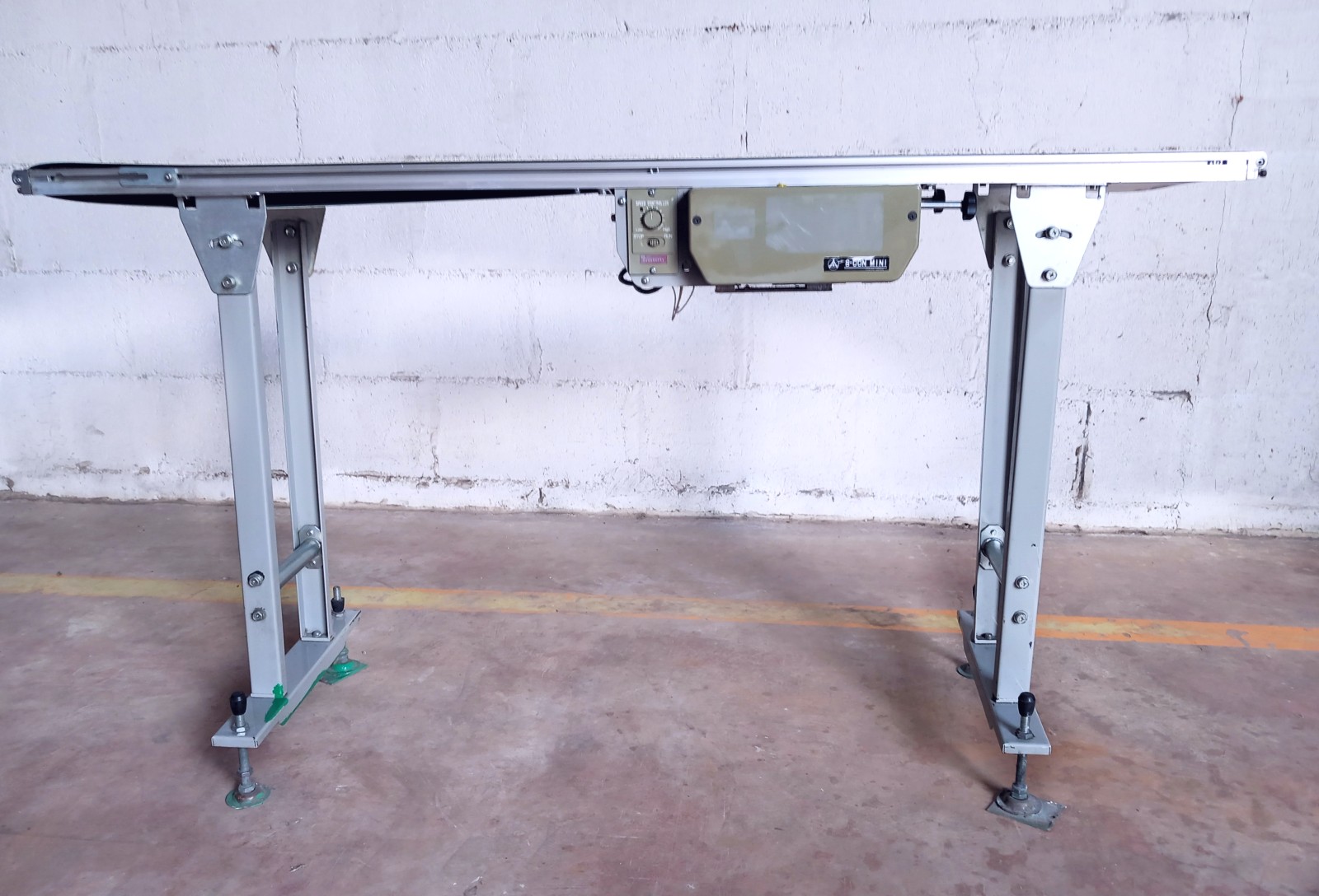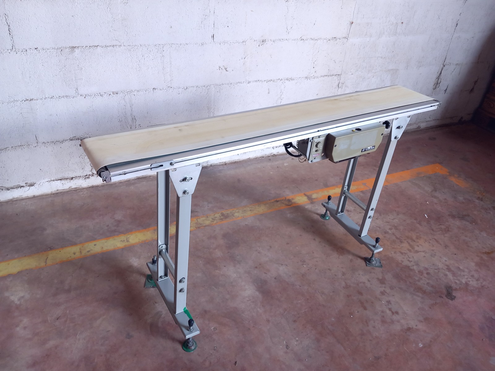 Il nastro trasportatore garantisce il trasferimento con costante continuità nel tempo del materiale o dei materiali caricati nella sua parte superiore. Il nastro riceve e contiene il materiale trasportato e, allo stesso tempo, trasmette la forza necessaria per il movimento del carico. Alle estremità questo tappeto si avvolge su tamburi andando così a creare un anello chiuso senza fine che permette di trasportare il materiale in continuo senza soste. Questo nastro trasportatore in acciaio inox è dotato di tappeto in materiale plastico e di motore elettrico per la movimentazione.