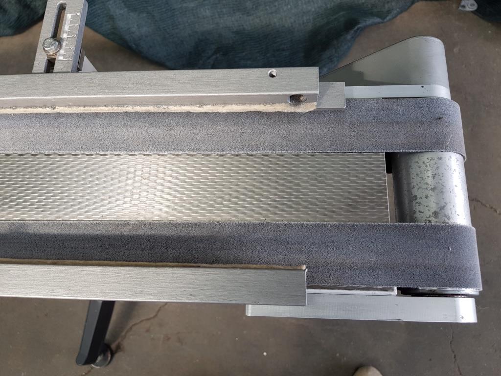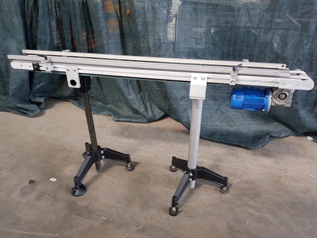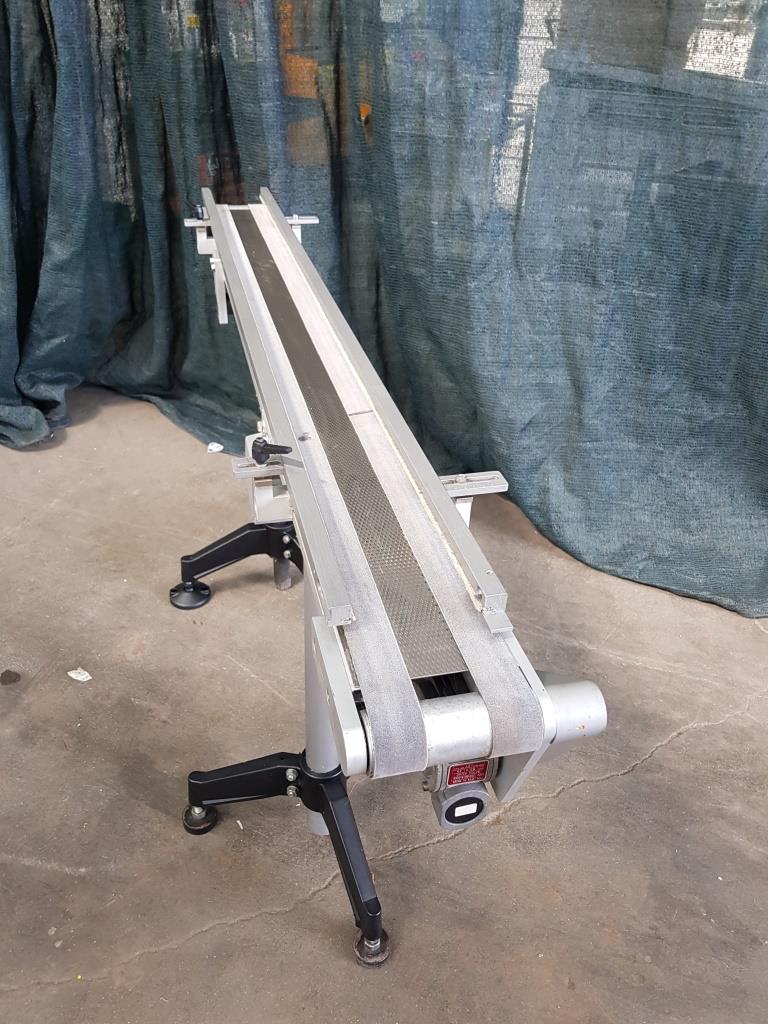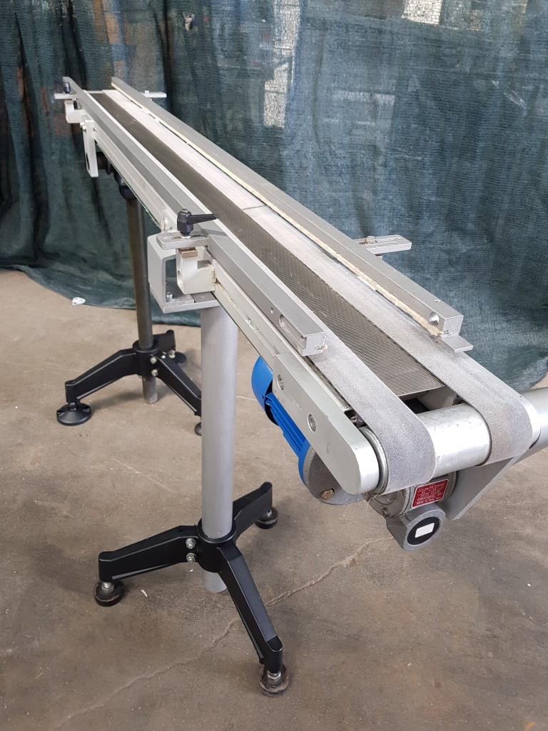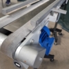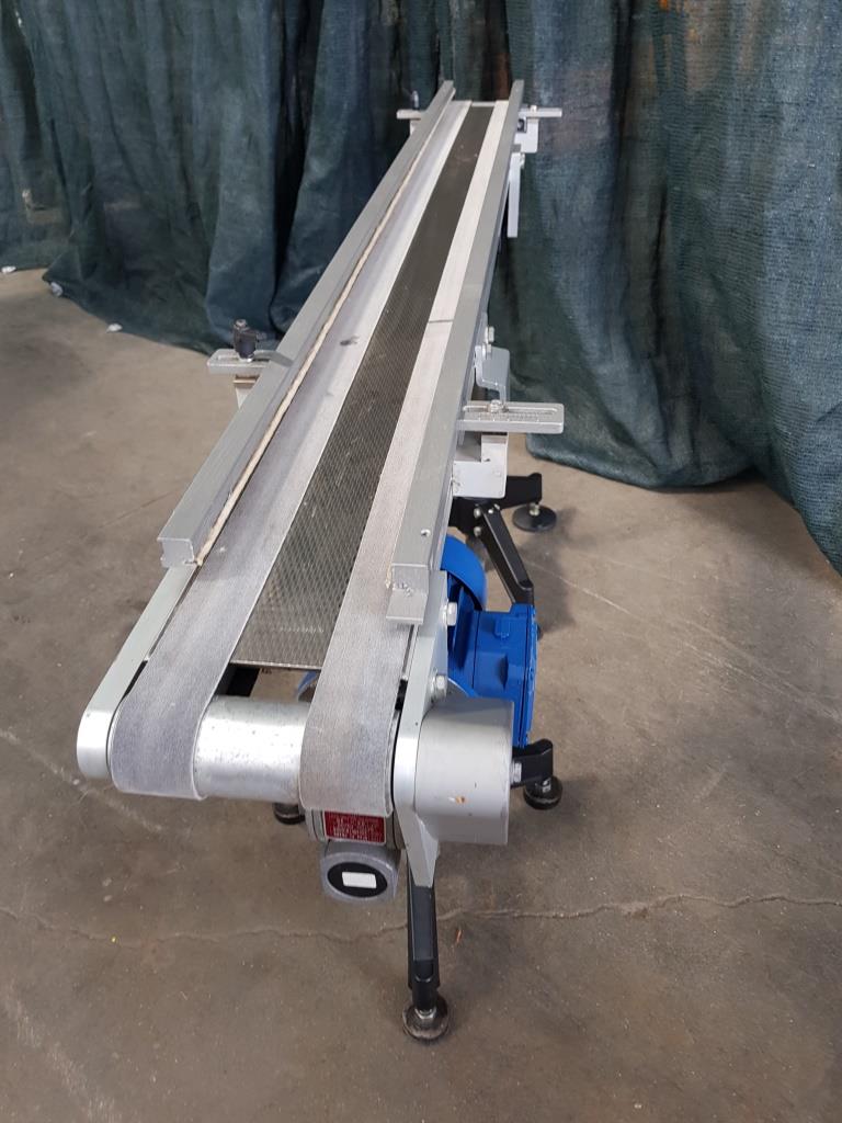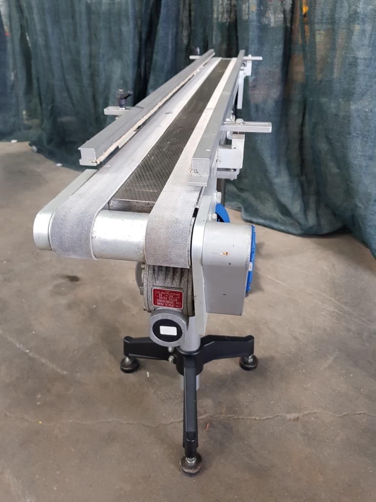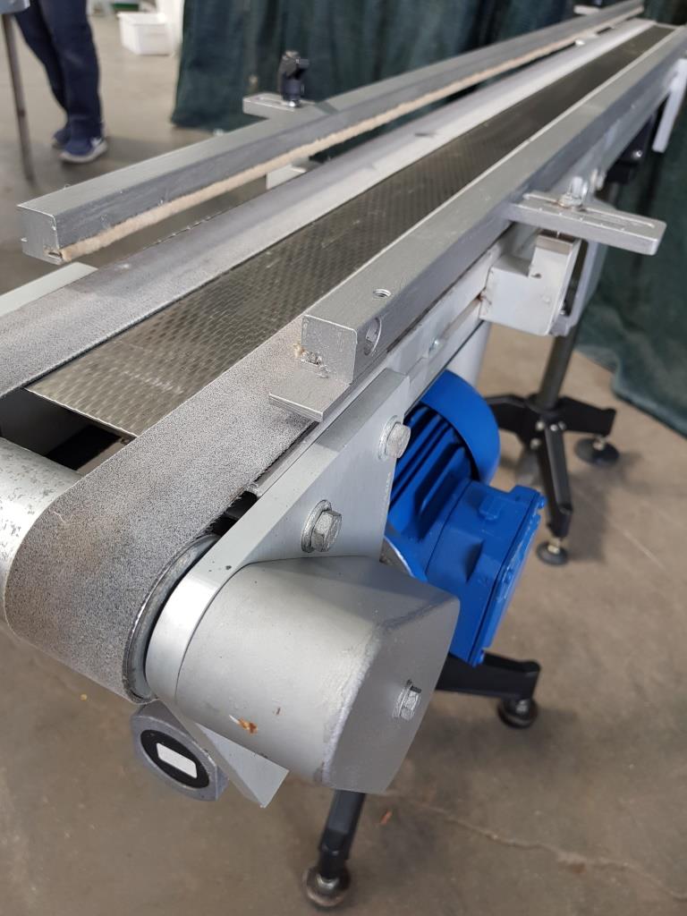 Questo nastro trasportatore in acciaio inox è dotato di tappeto in materiale plastico, con sponde laterali atte al contenimento del materiale trasportato, completo di supporti in acciaio con piedini che garantiscono stabilità al mezzo ed alla merce trasportata e di motore elettrico per la movimentazione.