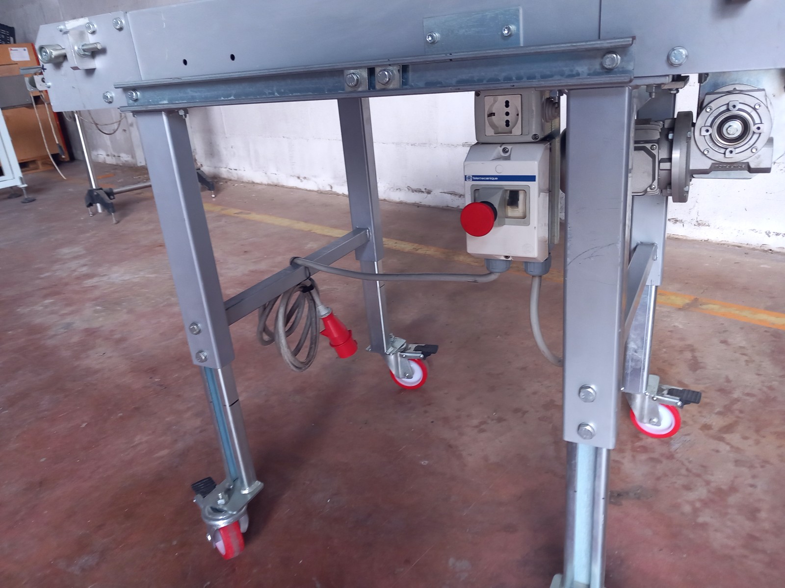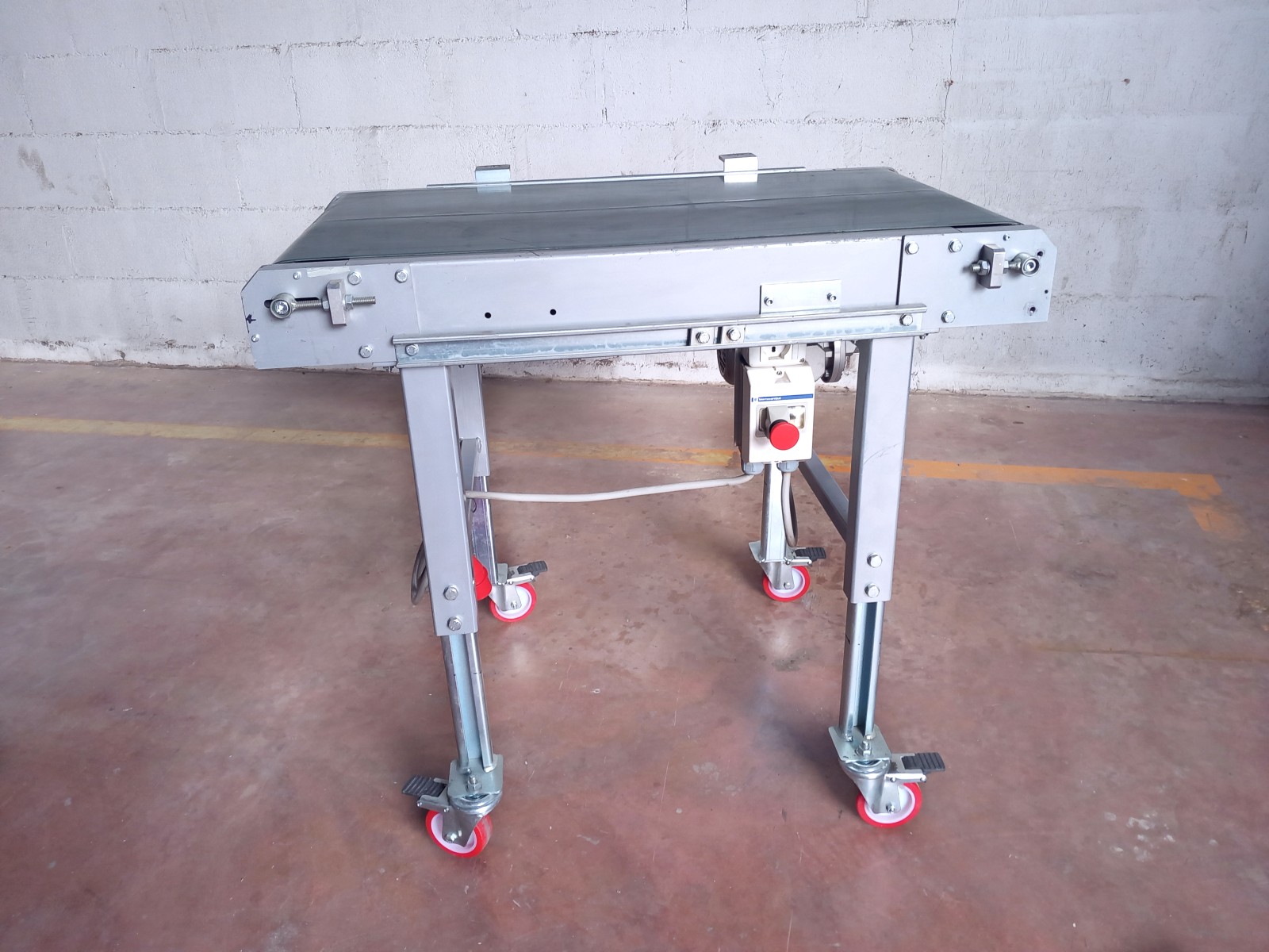 Il nastro trasportatore garantisce il trasferimento con costante continuità nel tempo del materiale o dei materiali caricati nella sua parte superiore. Il nastro riceve e contiene il materiale trasportato e nello stesso tempo trasmette la forza necessaria per il movimento del carico. Alle estremità questo tappeto si avvolge su tamburi andando così a creare un anello chiuso senza fine che permette di trasportare il materiale in continuo senza soste. Questo nastro trasportatore in acciaio inox è dotato di tappeto in materiale plastico e di motore elettrico per la movimentazione.