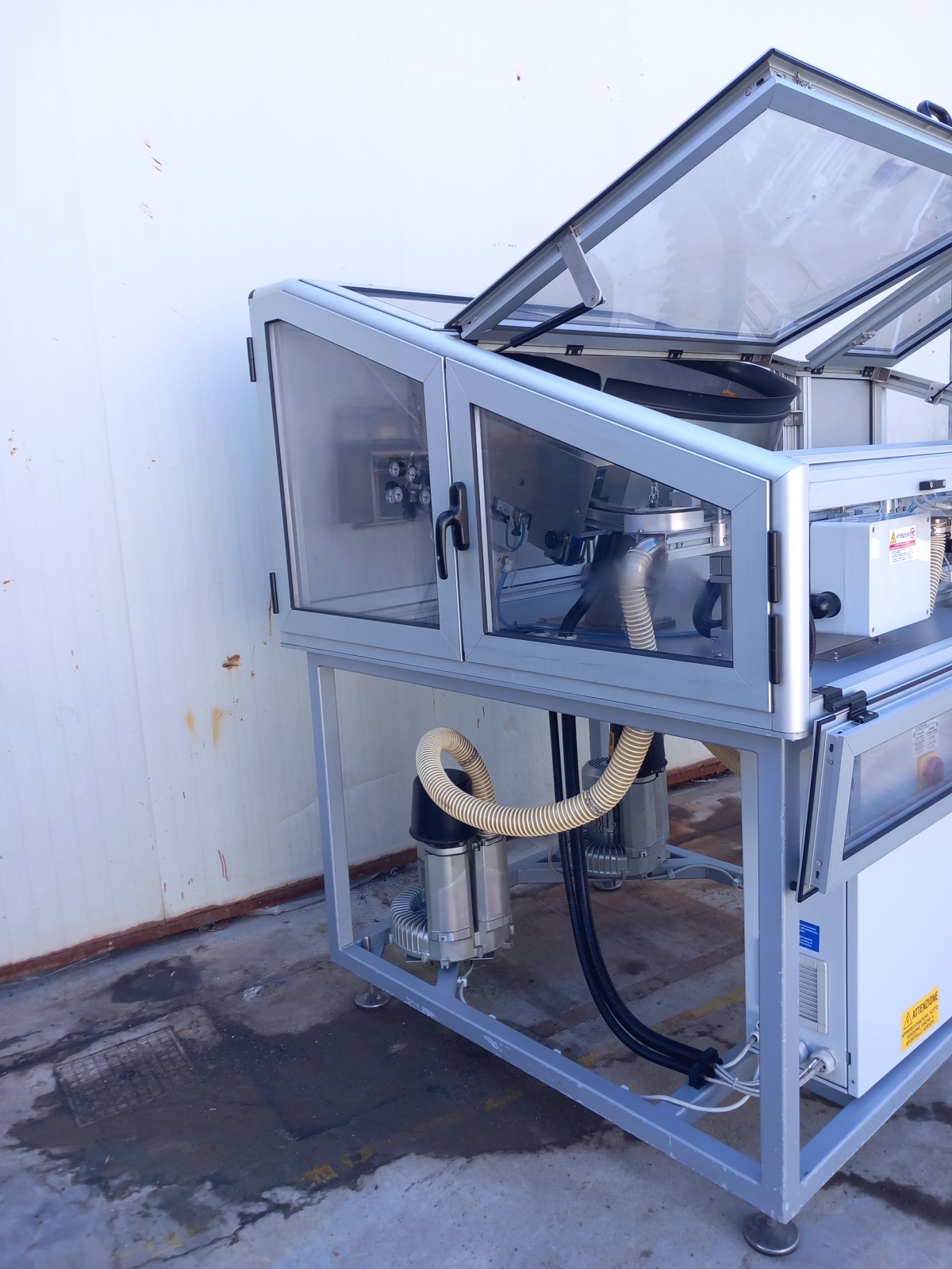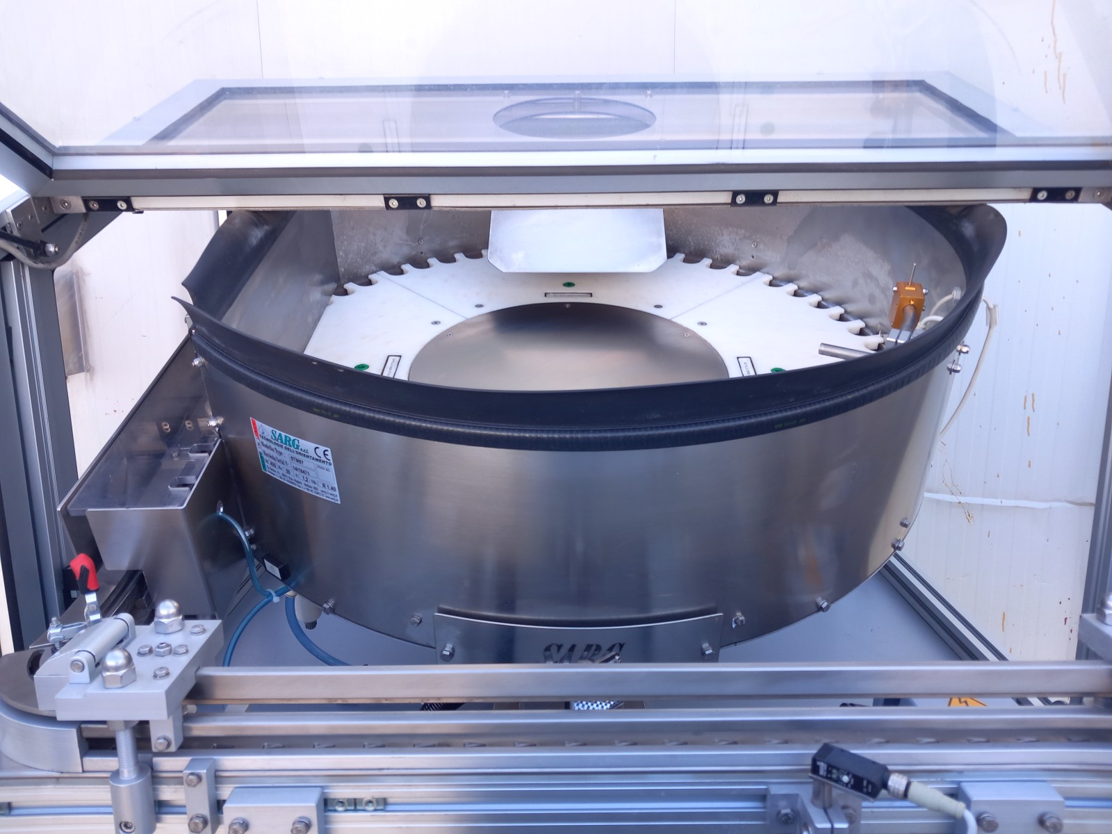 Orientatore a Vibrazione Meccanica SARG, progettato come Alimentatore Capsule. L’unità è robusta e dedicata all’automazione dei processi di confezionamento. Funzione primaria: orientamento e alimentazione automatica di componenti, garantendo un preciso posizionamento delle capsule per il processo a valle. Essenziale per efficienza e coerenza nelle linee di produzione.