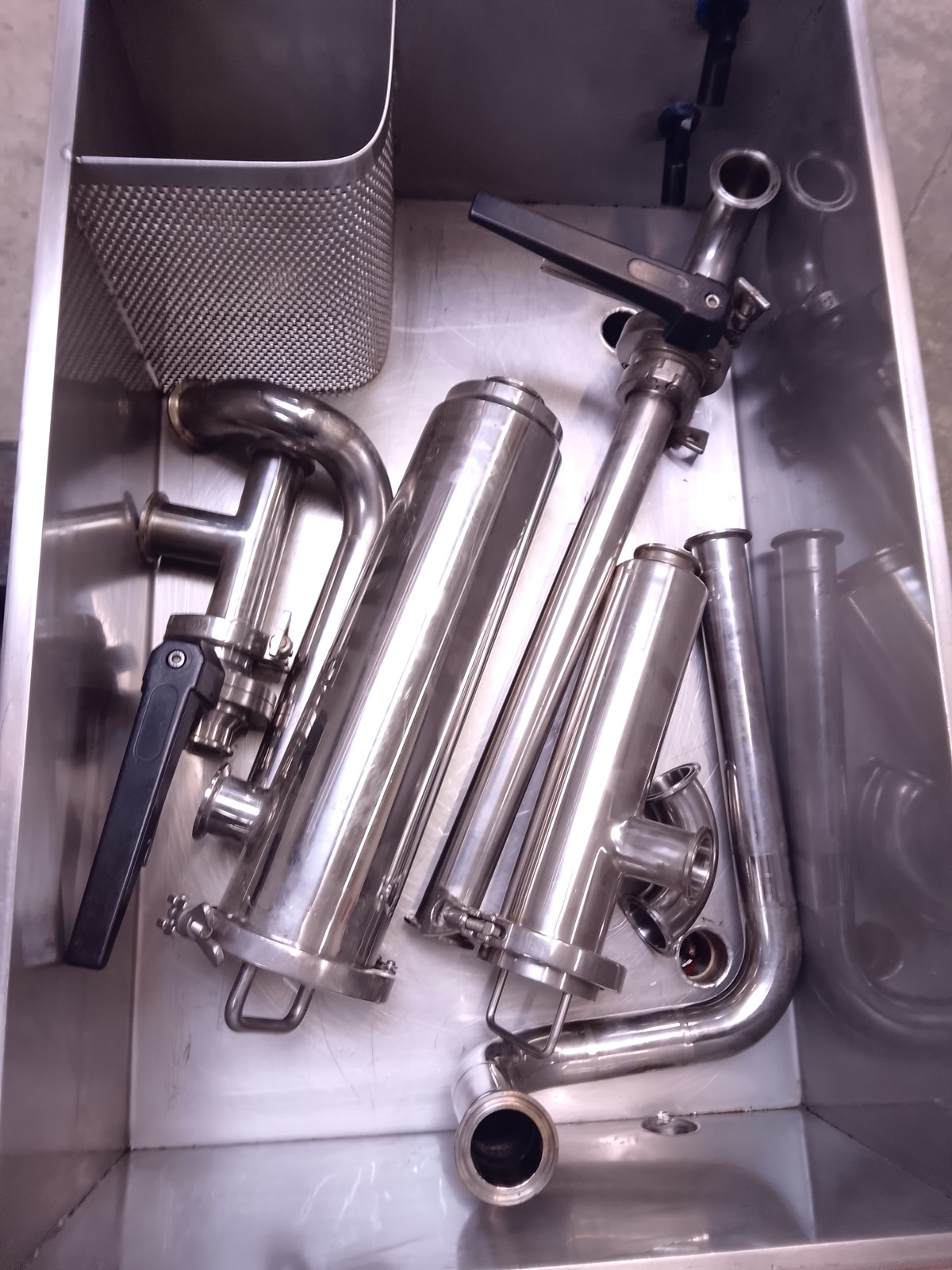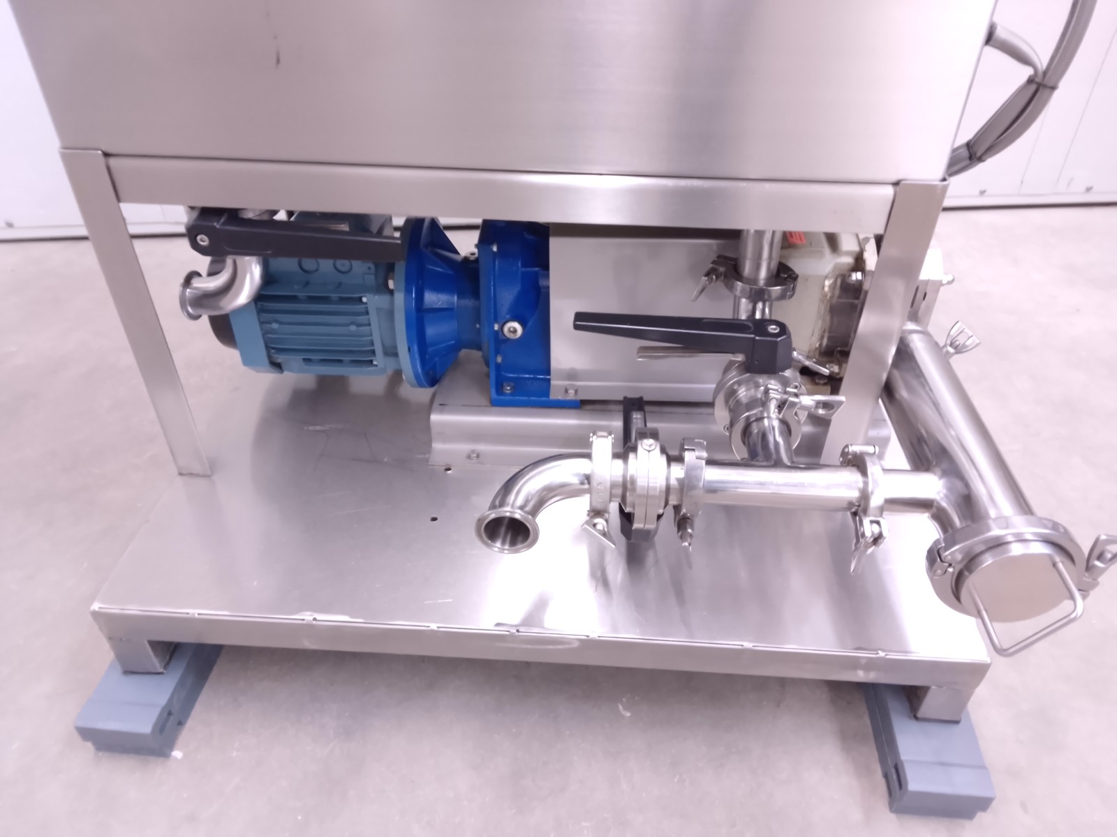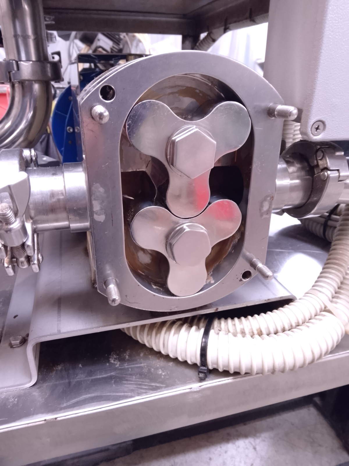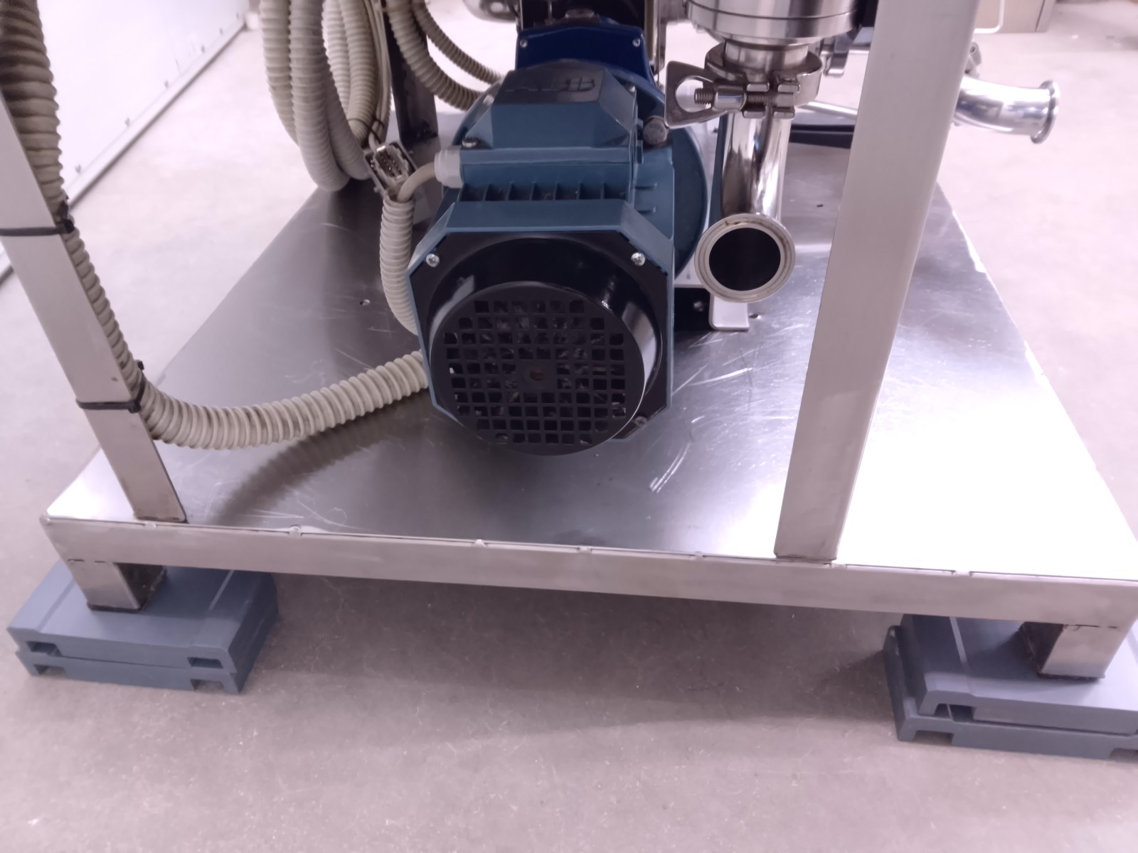 La pompa a lobi OMAC Mod. B110 5600 GU è una soluzione robusta e affidabile per il trasferimento di fluidi ad alta viscosità, progettata per applicazioni industriali e alimentari. Il gruppo è assemblato su telaio in acciaio inox con vasca di pescaggio integrata, che facilita l’alimentazione continua del prodotto e garantisce un flusso uniforme verso la pompa. L’unità è equipaggiata con motore ABB e organi idraulici in acciaio inox, idonei al trattamento di creme, paste e prodotti semidensi. La configurazione compatta e igienica la rende adatta a linee di produzione che richiedono facilità di lavaggio, affidabilità e controllo stabile del processo di trasferimento.