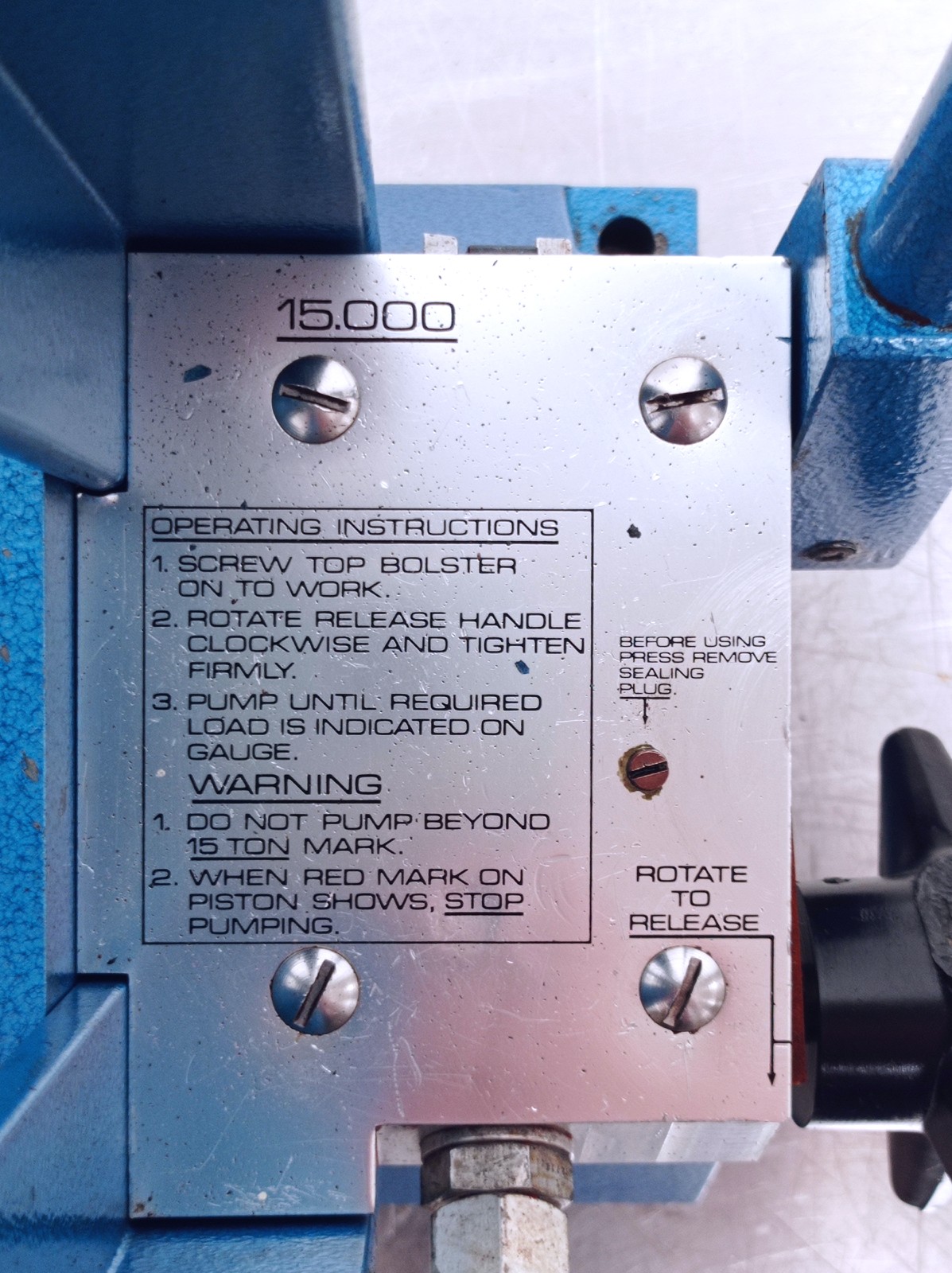Strumentazione di Controllo: Manometro analogico a doppia scala (Tonnellate metriche e US Tons).