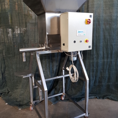 La riempitrice è completa di un formato per flaconi circolari in plastica di altezza totale 66 mm, diam. 30 mm, diam. tappo 24 mm ed è corredata inoltre del gruppo inserimento sovratappi di sicurezza in plastica non montato sulla macchina.