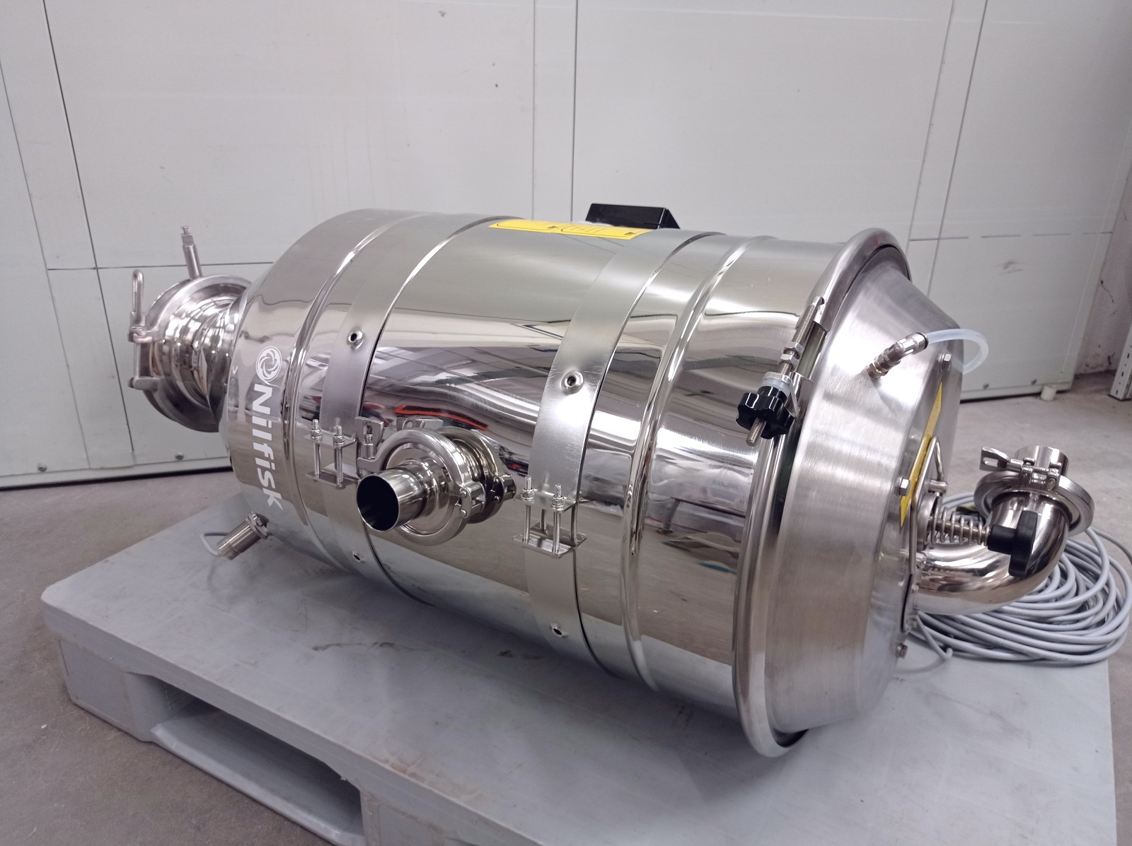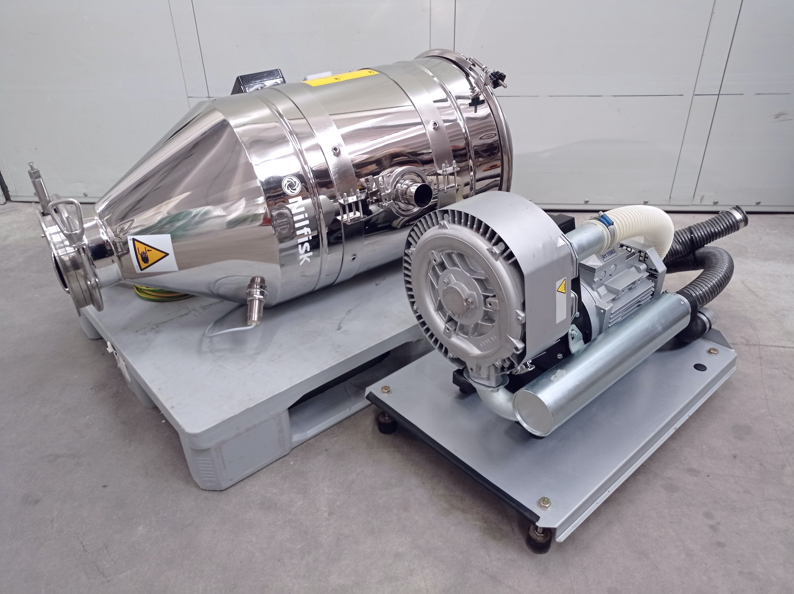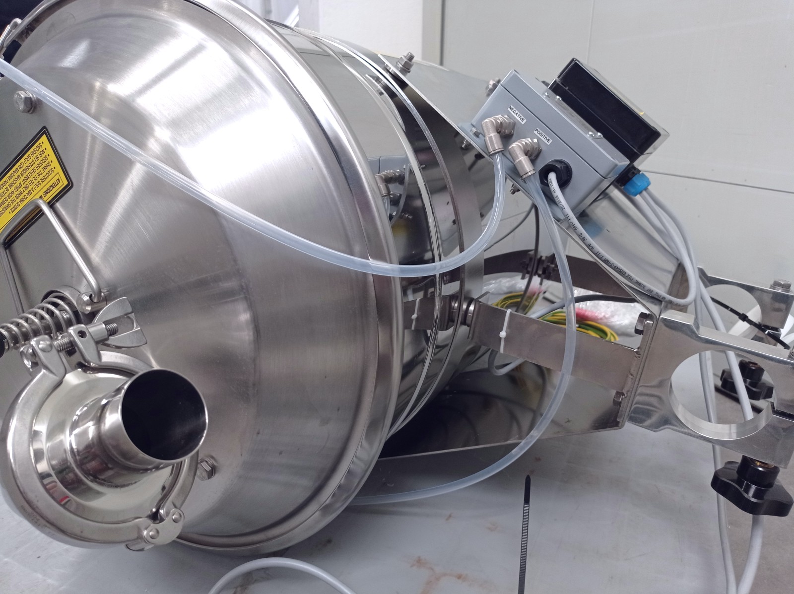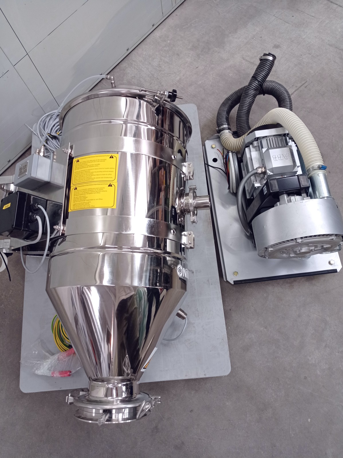 Il trasferitore è progettato per un’alimentazione affidabile dei materiali sfusi del flusso ai macchinari di trasformazione nel settore alimentare, della plastica e dell’industria chimica. Può raccogliere materiali da sacchi, fusti, contenitori o silos. Utilizza un sistema di trasporto pneumatico, che consente di spostare solidi sfusi attraverso una tubazione mediante aria. Grazie a una pompa a vuoto, si stabilisce una pressione negativa che facilita il trasporto sicuro delle particelle, rendendo questo metodo ideale per l’industria alimentare e farmaceutica. La costruzione in acciaio inossidabile lucidato garantisce igiene e durabilità. Alimentazione ad aria e elettrovalvole ne aumentano l’efficienza operativa.
