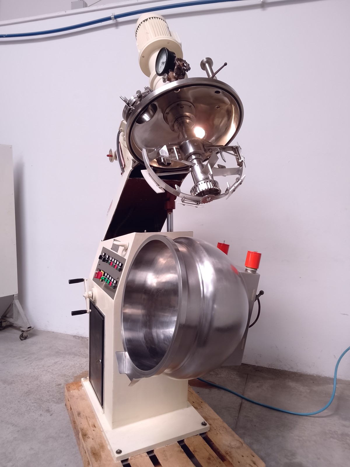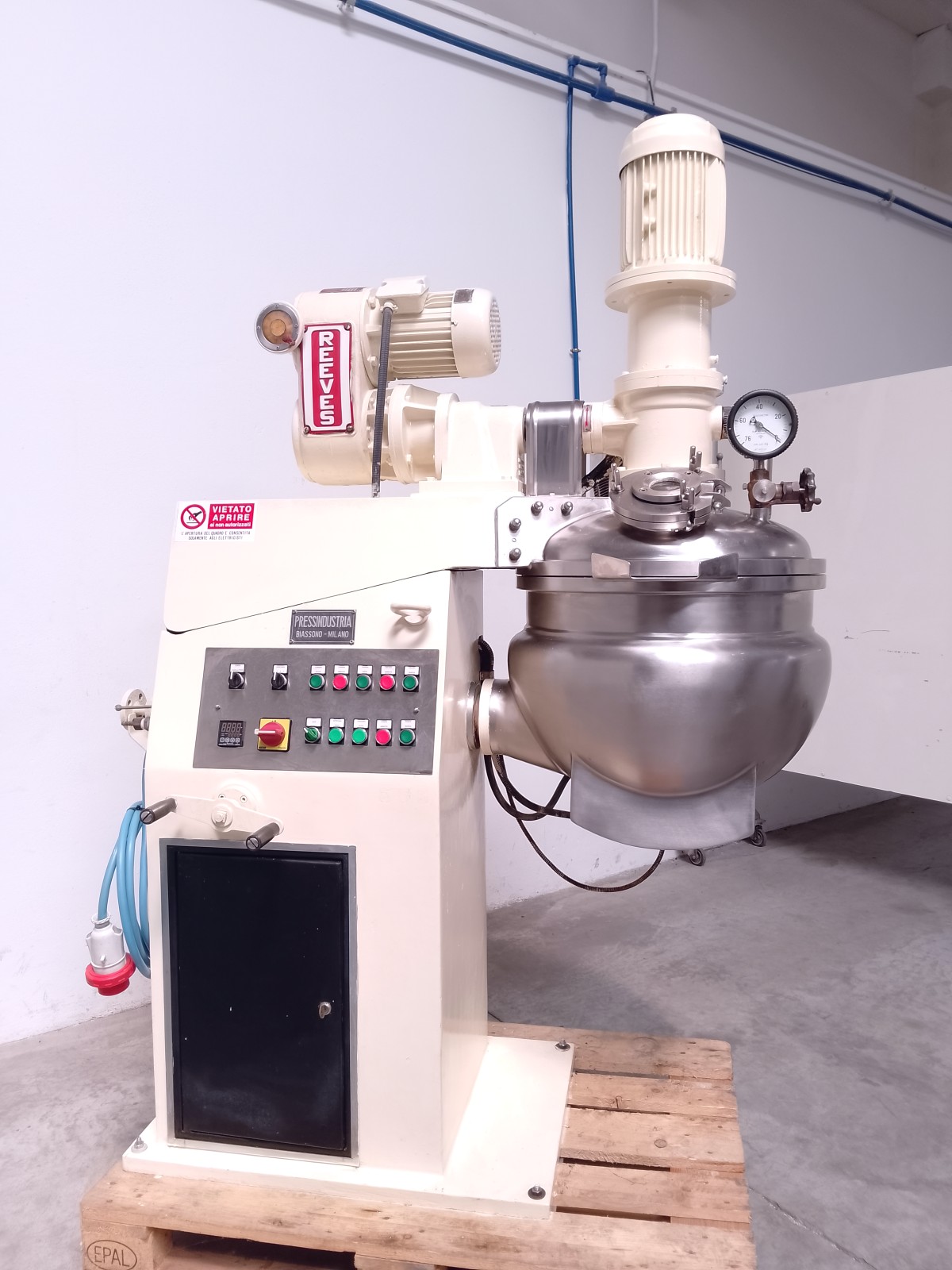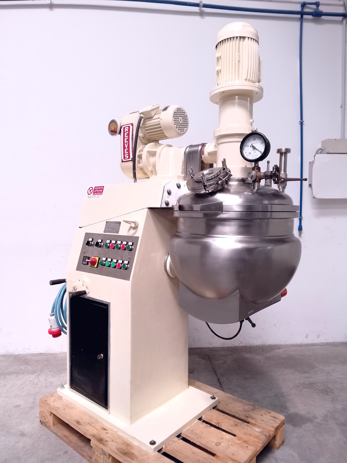 Il turboemulsore è progettato per soddisfare esigenze specifiche delle industrie cosmetiche, farmaceutiche e chimiche. Permette di ottenere prodotti di eccellente qualità e riproducibilità, riducendo i costi operativi. Il serbatoio è progettato per lavorare in condizioni atmosferiche standard, sotto pressione. Questo tipo di miscelatore racchiude tutte le caratteristiche costruttive richieste per un’ottima e veloce lavorazione ed è adatto per la miscelazione di prodotti liquidi utilizzando calore, pressione ed energia di agitazione meccanica per produrre prodotti omogenei per l’industria chimica, farmaceutica, cosmetica o alimentare. Tutte le parti a contatto sono in acciaio inox. Turboemulsore con serbatoio da 50 litri, armadio elettrico con motore e controllo delle funzioni. Sistema di miscelazione con: Sistema di ancoraggio miscelatore a raschiatore, lame contro rotanti, turbina di omogeneizzazione.