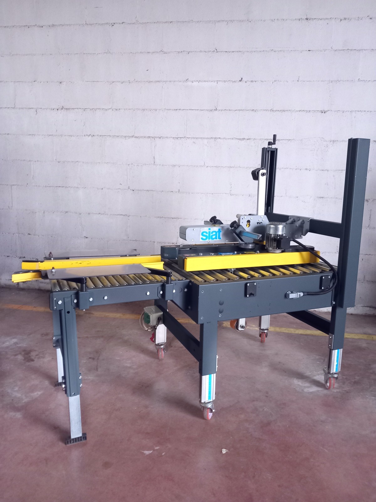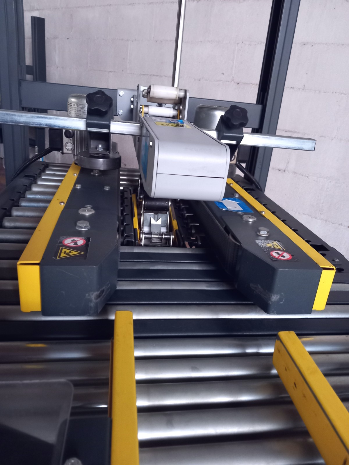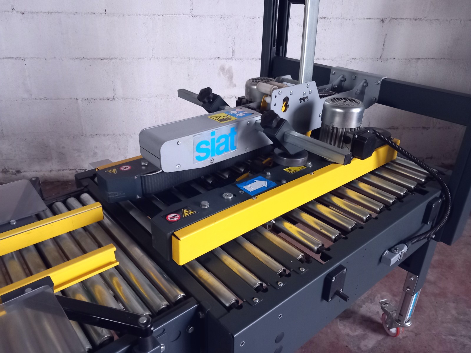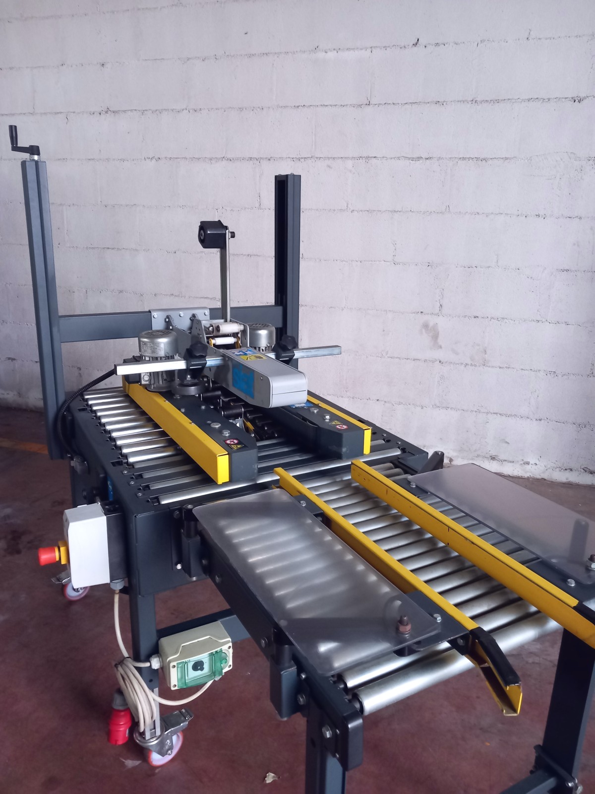 Semi-automatische Maschine zum Verschließen von Kartons mit Klebeband.