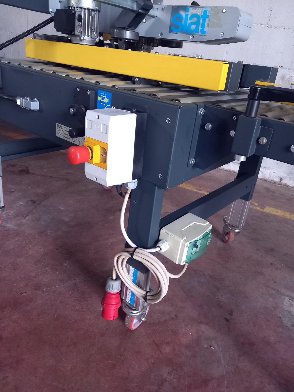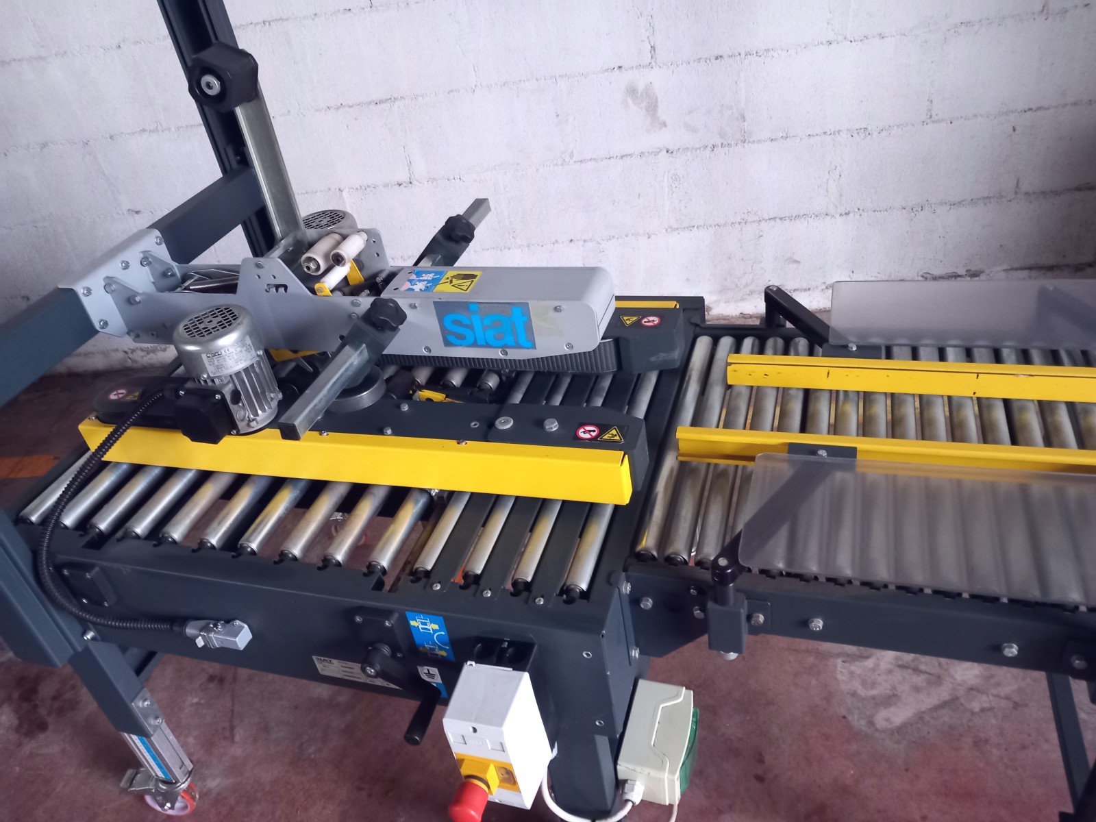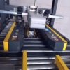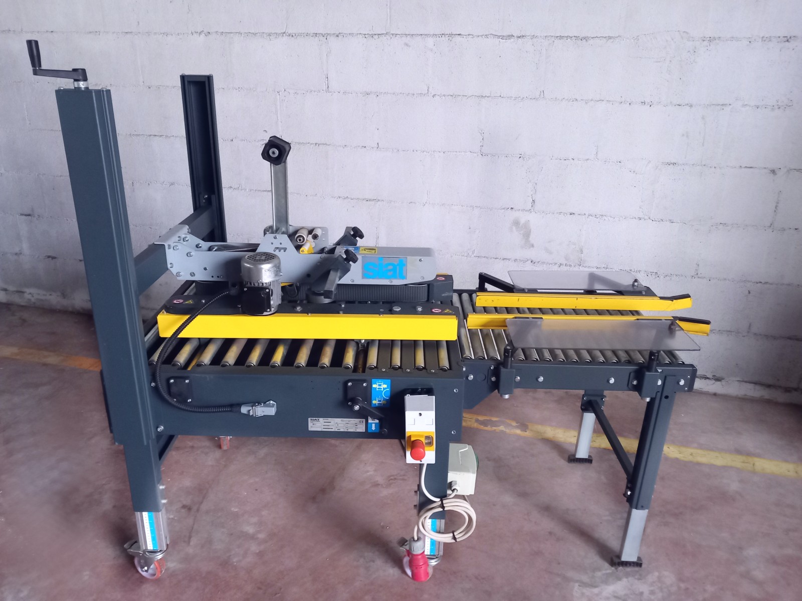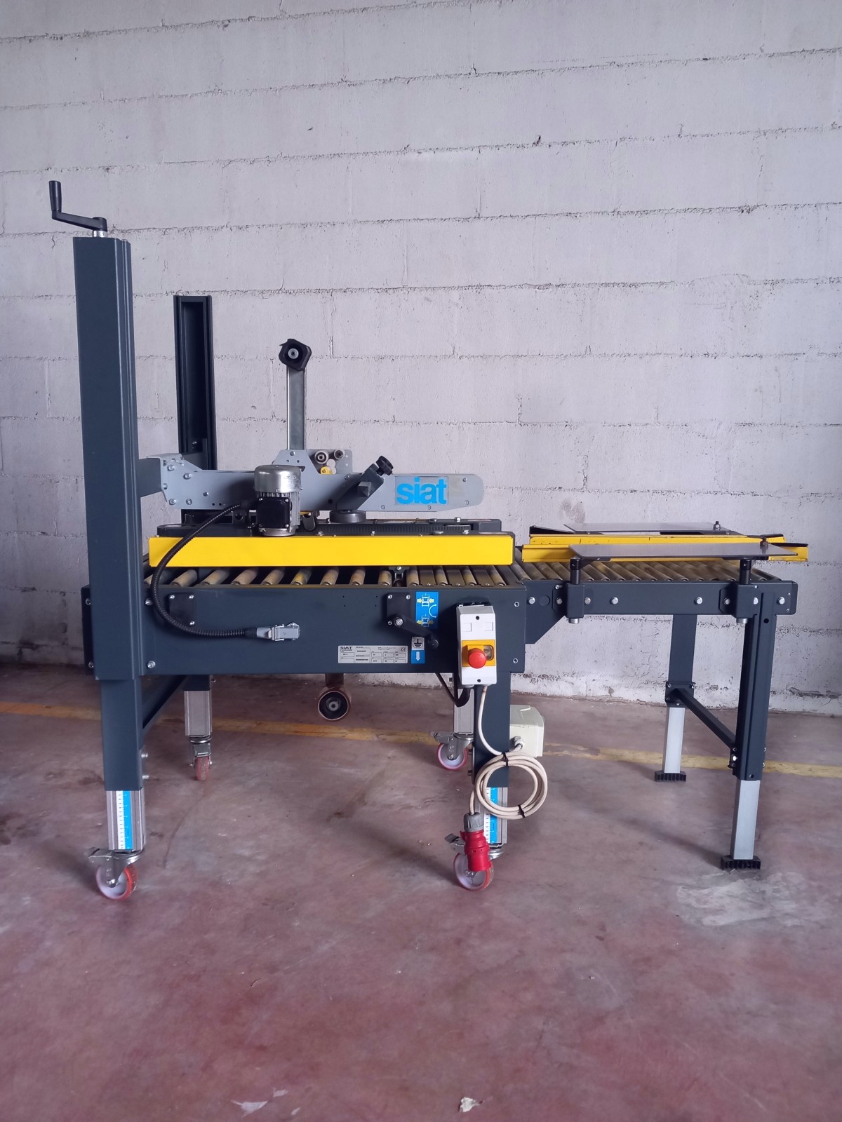 Semi-automatische Maschine zum Verschließen von Kartons mit Klebeband.