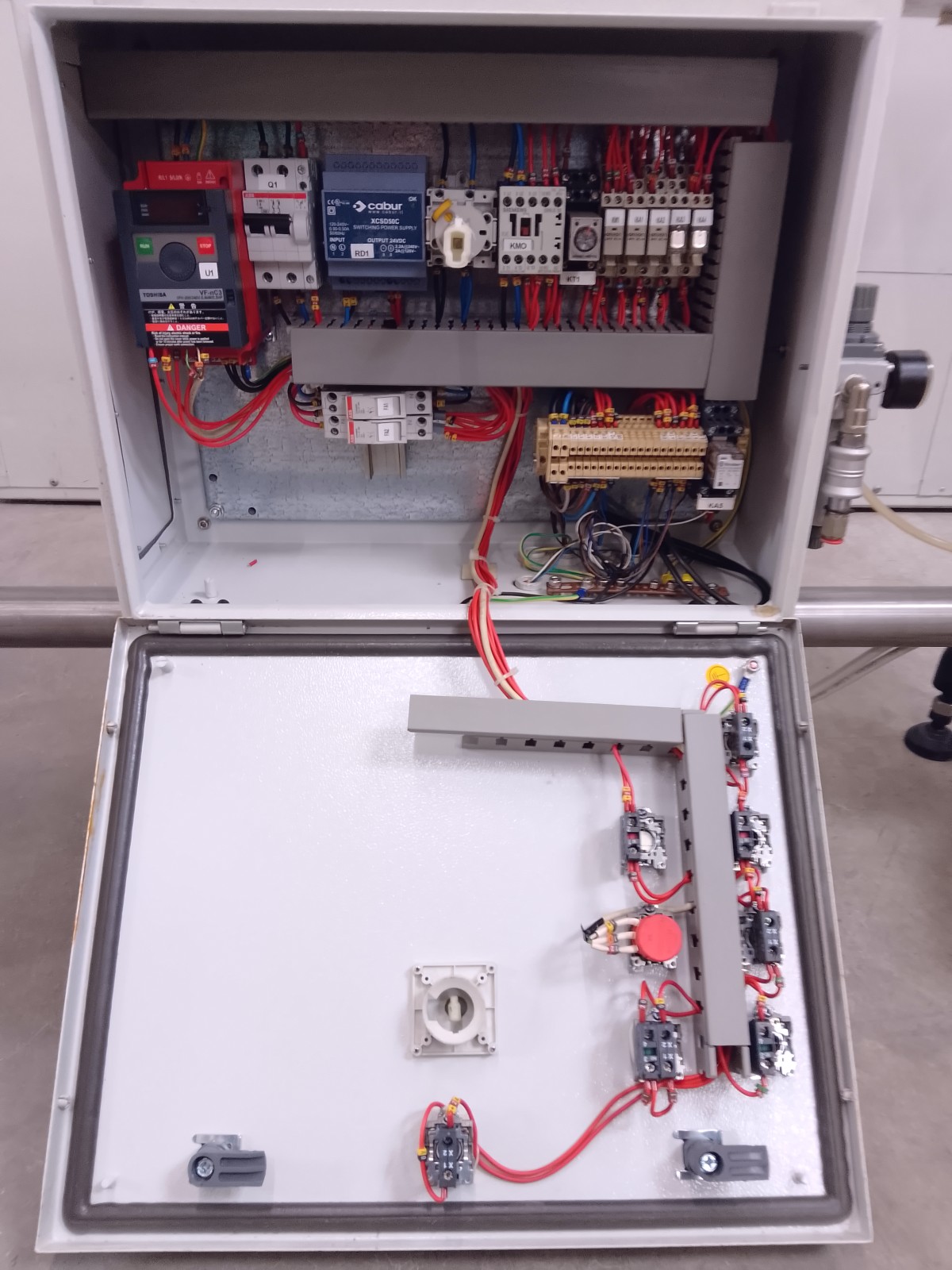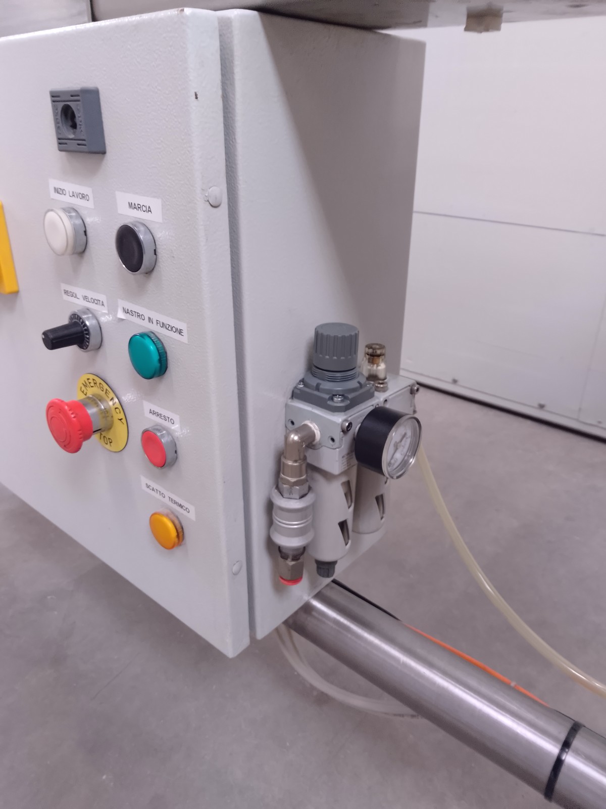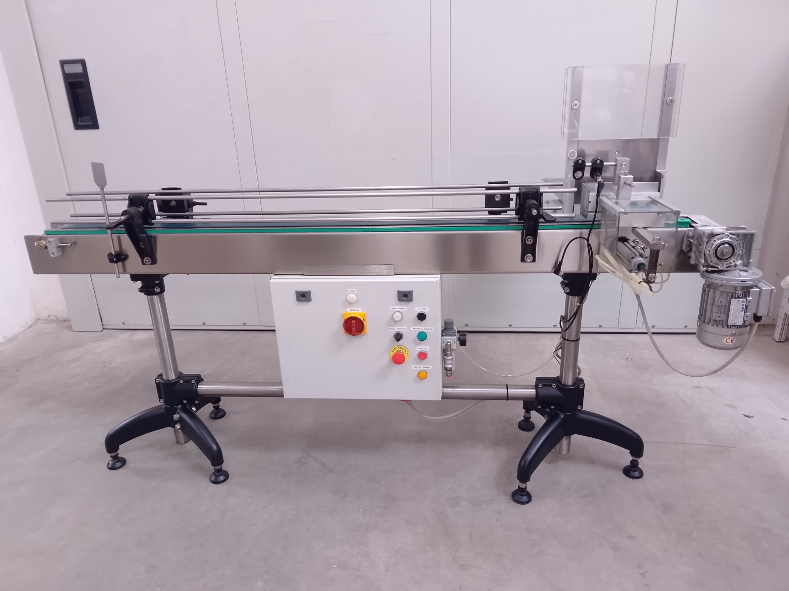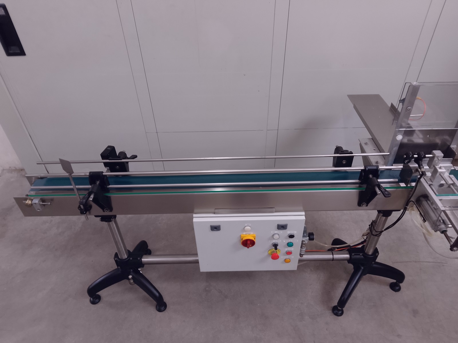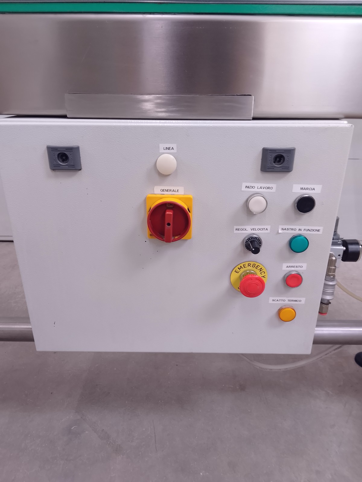 The conveyor belt ensures continuous transfer over time of the material or materials loaded on its upper part. The belt receives and contains the transported material while simultaneously transmitting the necessary force for load movement. At the ends, this belt wraps around drums, thus creating an endless closed loop that allows for continuous material transport without stops. This stainless steel conveyor belt is equipped with a plastic material belt, with lateral edges designed to contain the transported material and an electric motor for movement. The unit is complete with steel supports with feet that ensure stability for both the machine and the transported goods. The belt is equipped with an electric motor for movement and a speed variator, control panel, and emergency stop button.
