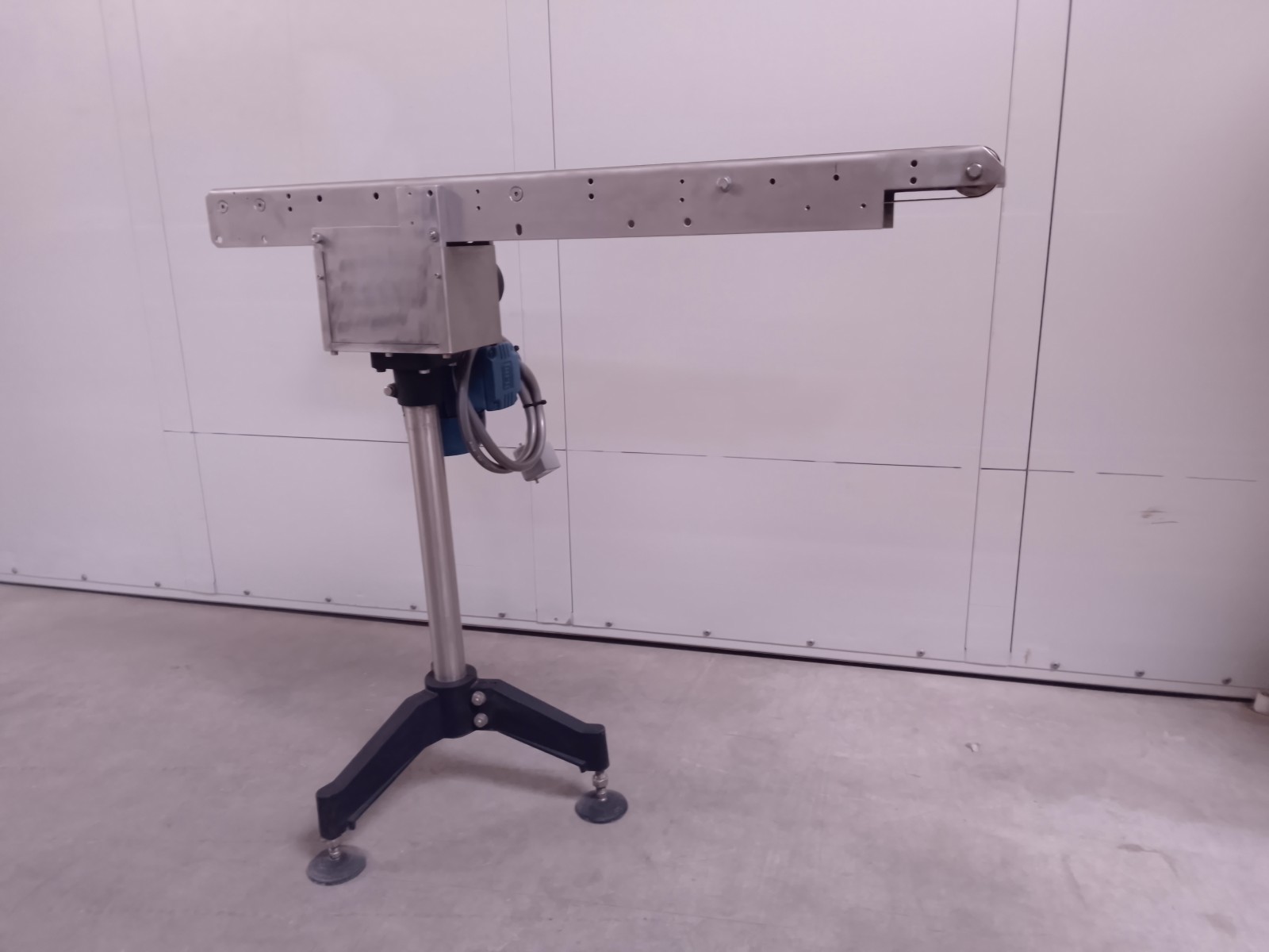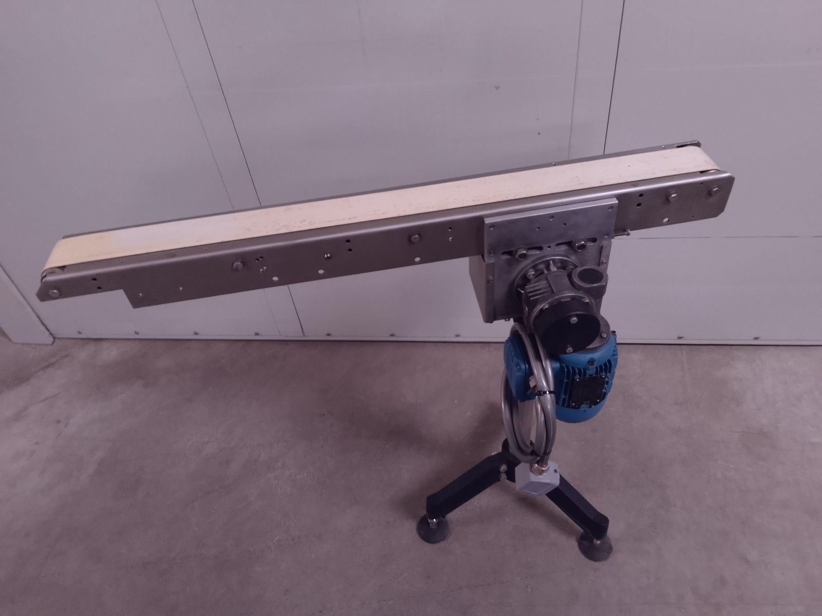 The conveyor belt ensures constant continuity in the transfer of materials loaded on its upper part. The belt receives and contains the transported material while transmitting the necessary force for load movement. At the ends, this belt wraps around drums, creating a closed loop that allows for continuous material transport without stops. This stainless steel conveyor belt is equipped with a plastic material belt.
