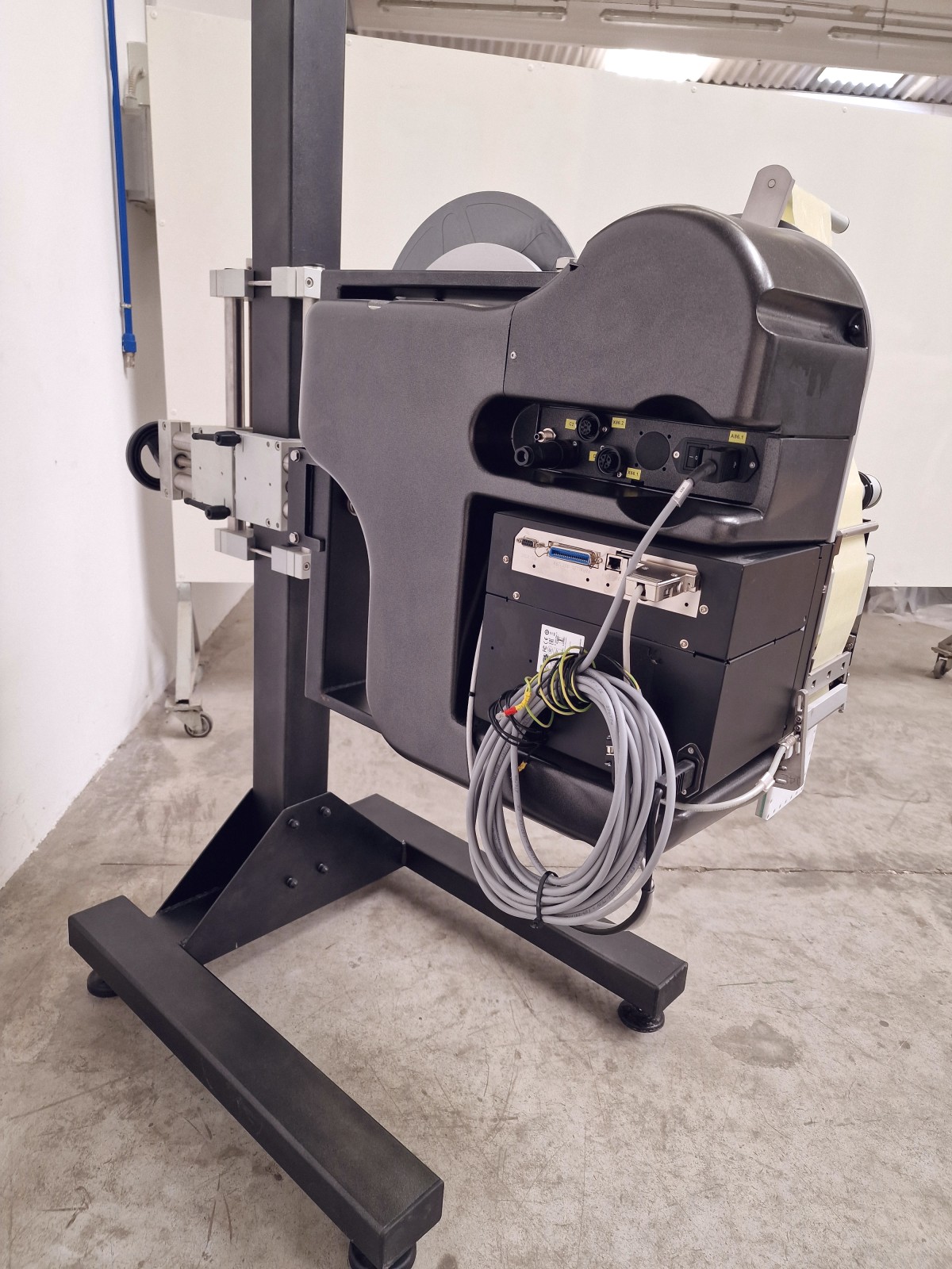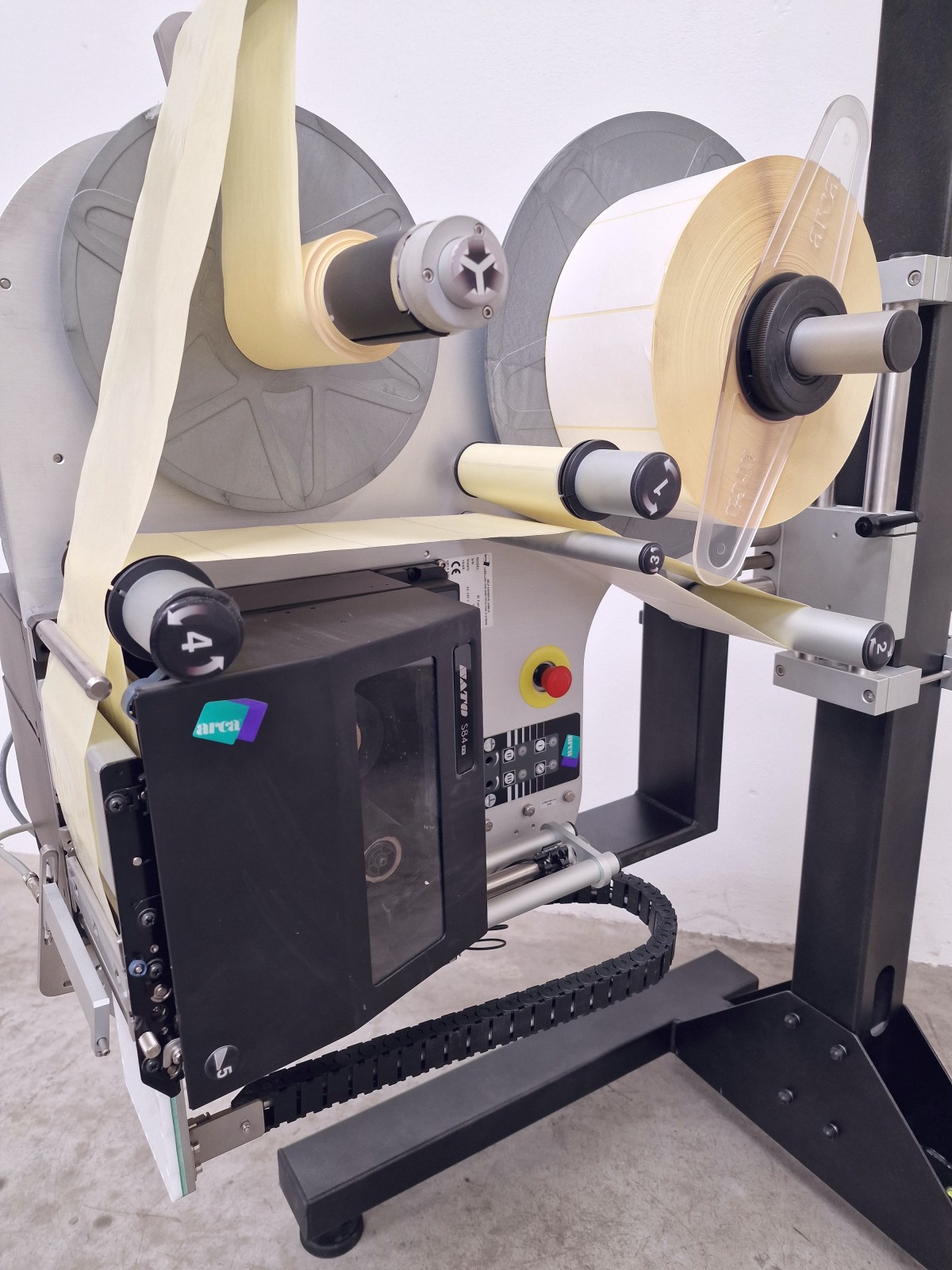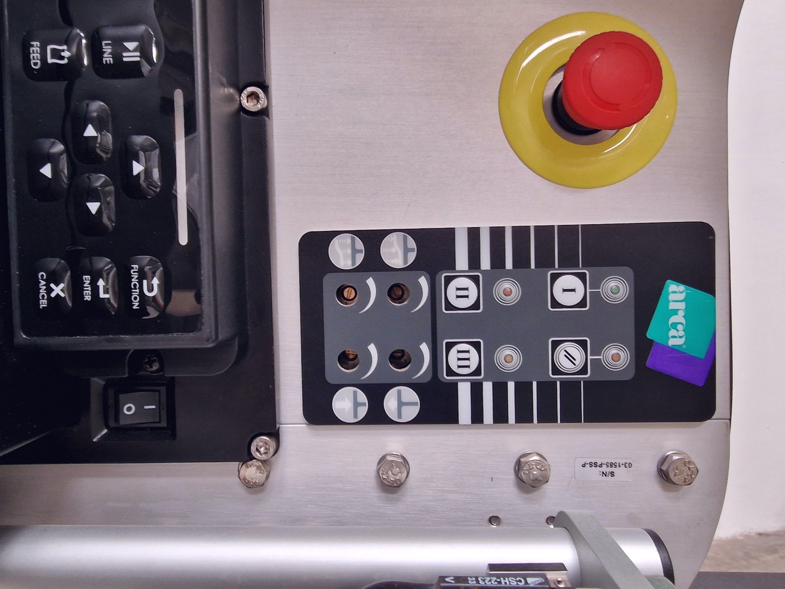 The ARCA LINERPLUS BI-FUEL is a robust and reliable print and apply machine designed for industrial use. Built on a solid anodized aluminum casting plate, it provides durability and stability. Its Bi-Fuel system incorporates a housing for large diameter label rolls (up to 360 mm), doubling the autonomy compared to standard models and significantly reducing downtime for material replacement. The operator panel features a monochrome LCD display and physical button keyboard, allowing for easy management of printing and application functions.
