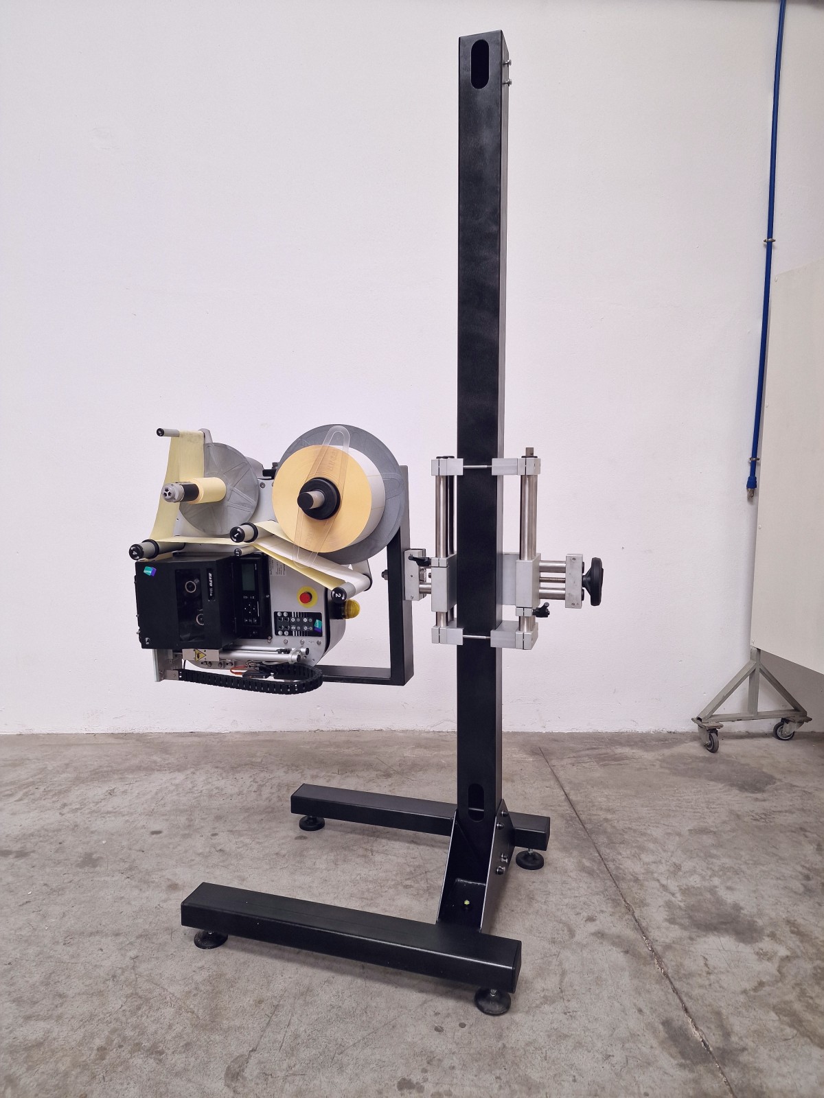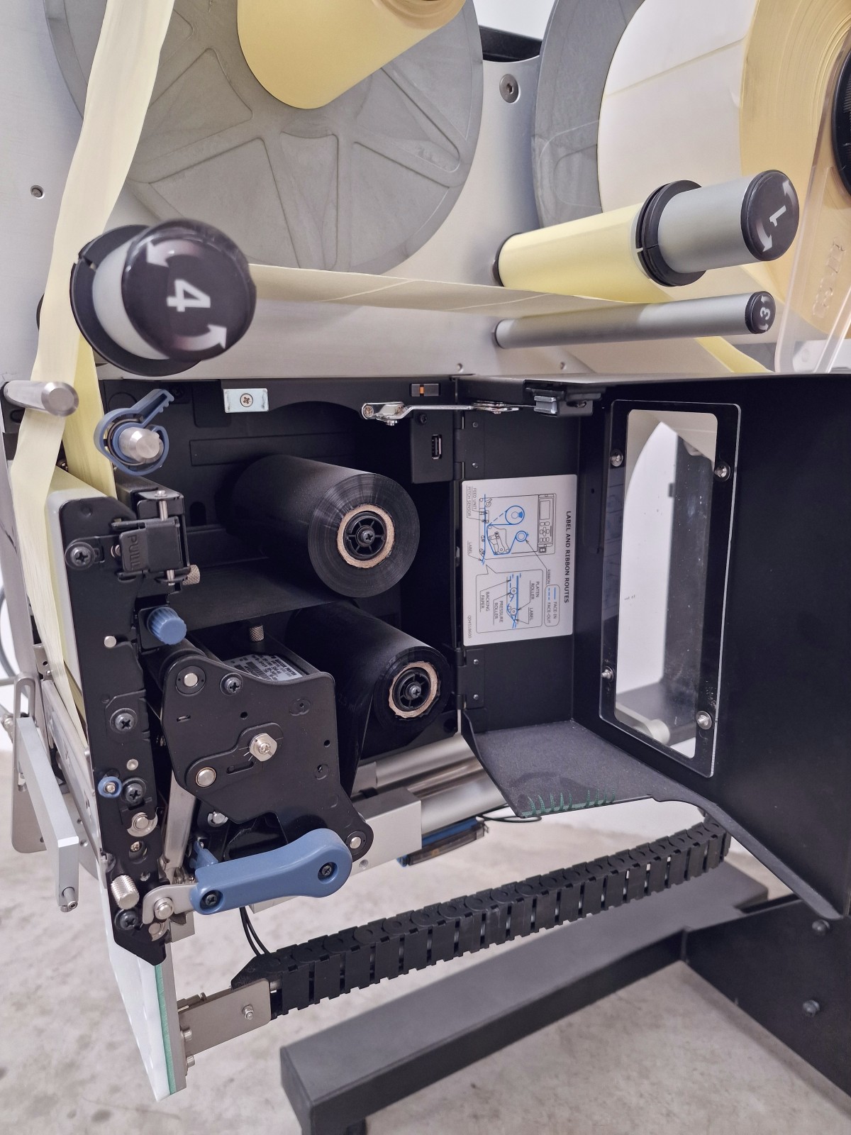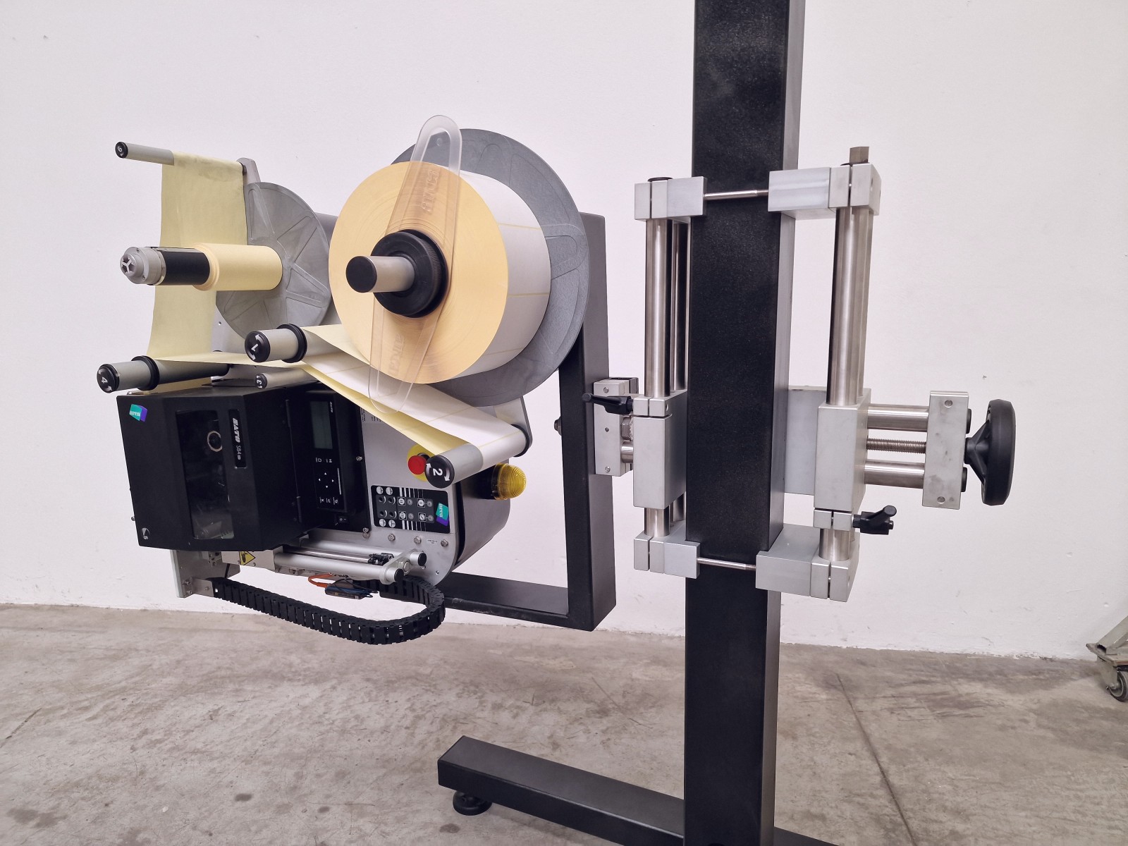 The ARCA LINERPLUS BI-FUEL is a robust and reliable print and apply machine designed for industrial use. Built on a solid anodized aluminum casting plate, it provides durability and stability. Its Bi-Fuel system incorporates a housing for large diameter label rolls (up to 360 mm), doubling the autonomy compared to standard models and significantly reducing downtime for material replacement. The operator panel features a monochrome LCD display and physical button keyboard, allowing for easy management of printing and application functions.