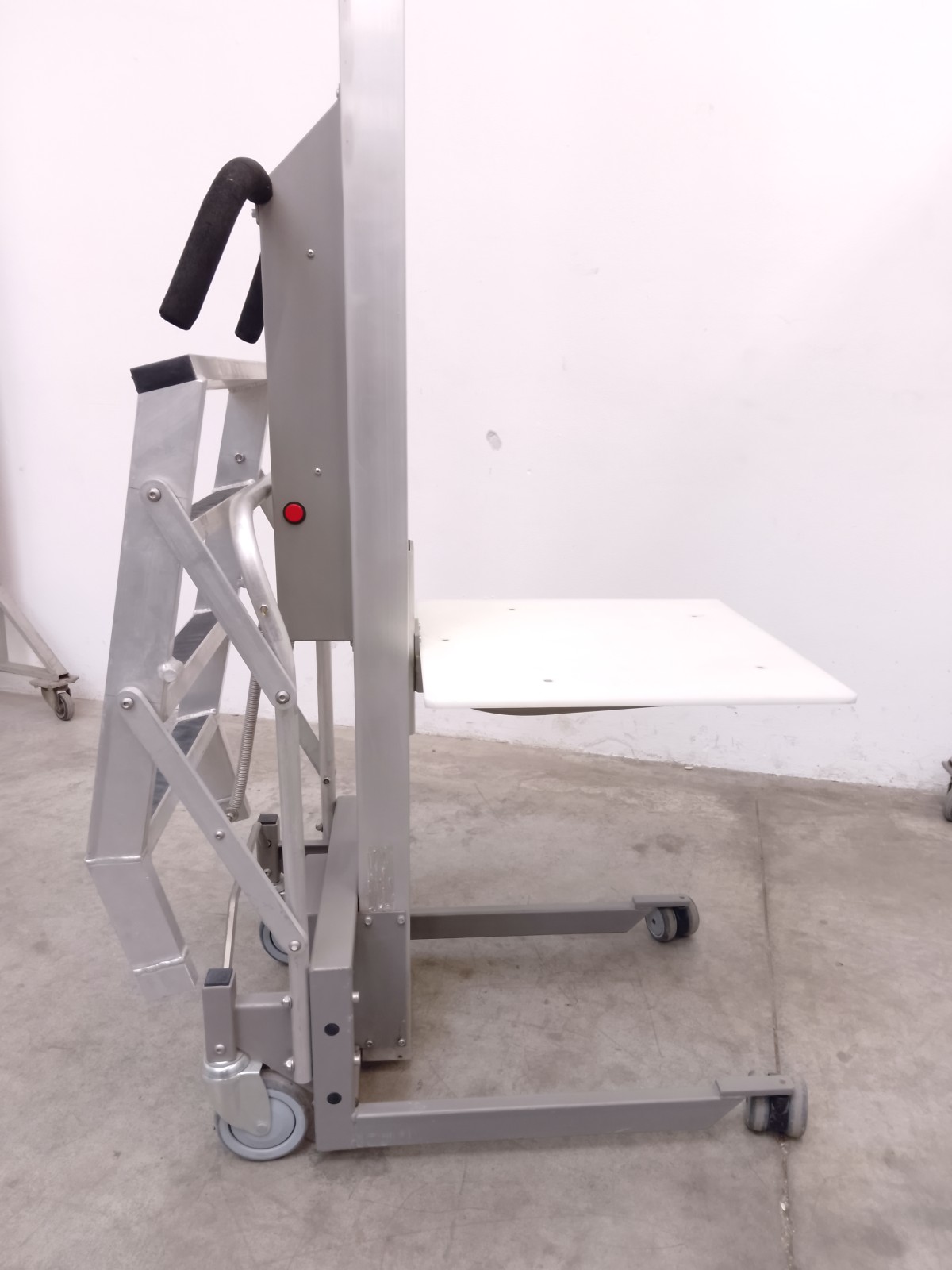 The lifting truck is an operational vehicle equipped with wheels and powered by electric motors, used for lifting and moving goods within logistics warehouses or for loading and unloading goods from transport vehicles. Stainless steel elevator allowing material transport. With the HOVMAND electric lifter, you can lift accessories and packaged containers to an ergonomic working height. Thanks to the compact design of the lifter, it is ideal for working in tight spaces.