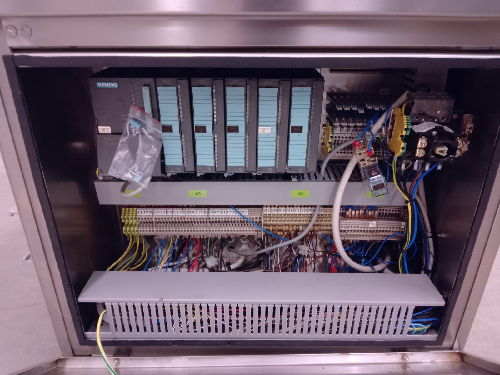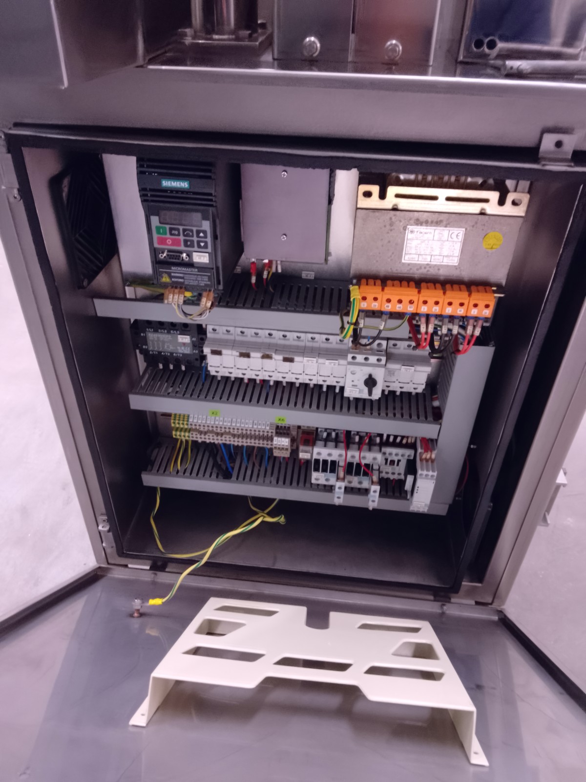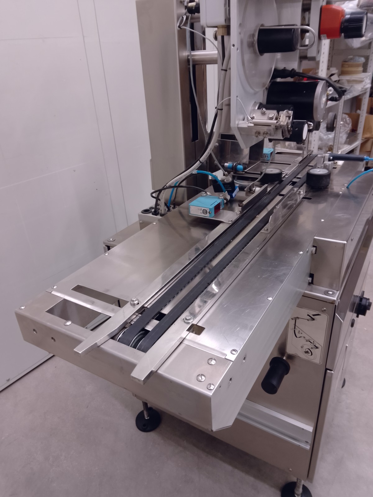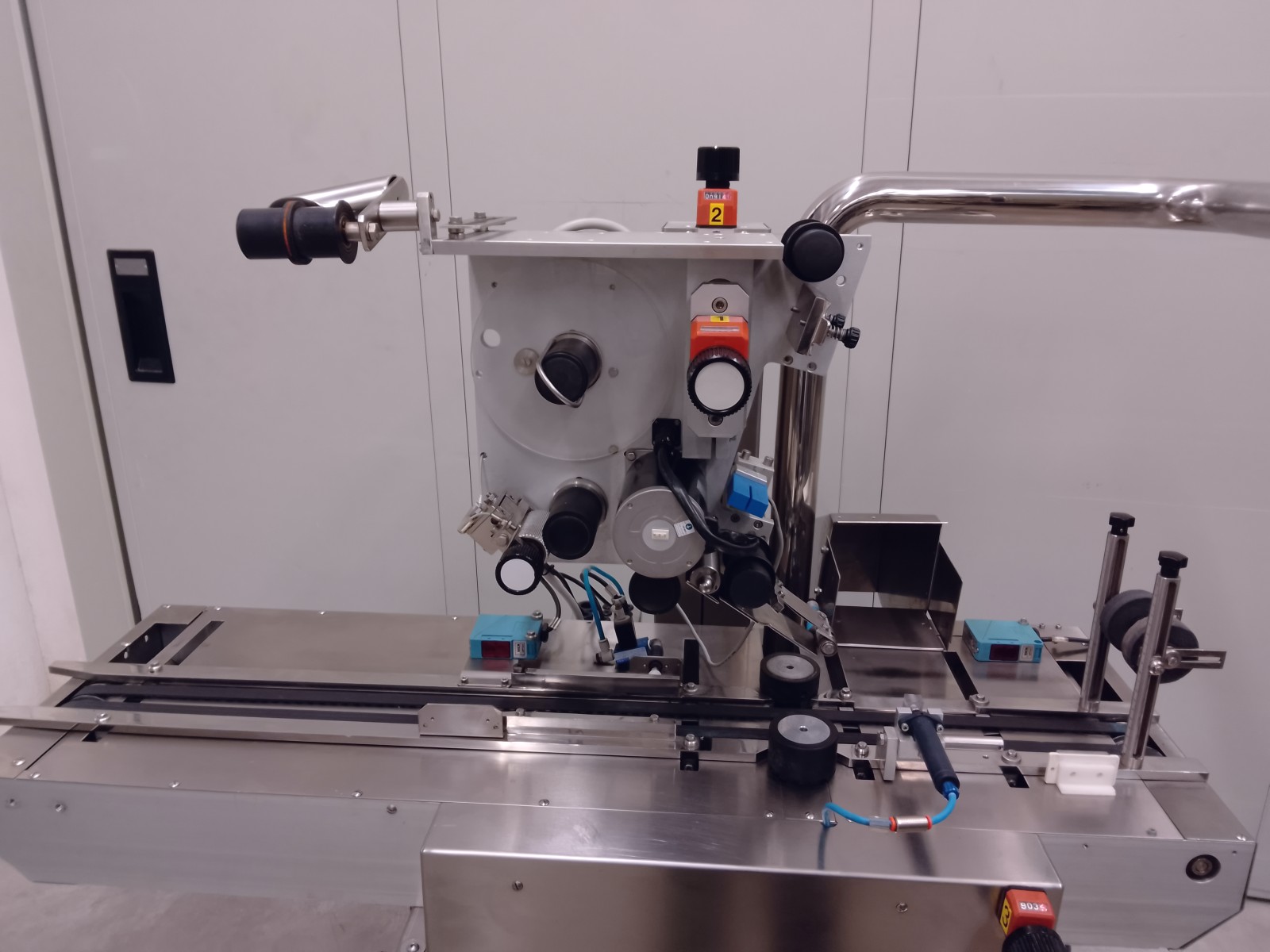 La machine à étiqueter SL 400 est fabriquée en acier inoxydable de haute qualité et répond aux normes de sécurité européennes, comme l’indique le marquage CE. Conçue pour l’application automatique d’étiquettes sur des produits transportés horizontalement, elle dispose d’un groupe d’étiquetage réglable et d’une interface HMI (Interface Homme-Machine) numérique pour une utilisation intuitive. Le poids opérationnel de la machine est de 280 kg. Le système électrique comprend un transformateur d’isolement FAEM MOD. 6266 pour gérer les tensions auxiliaires nécessaires.