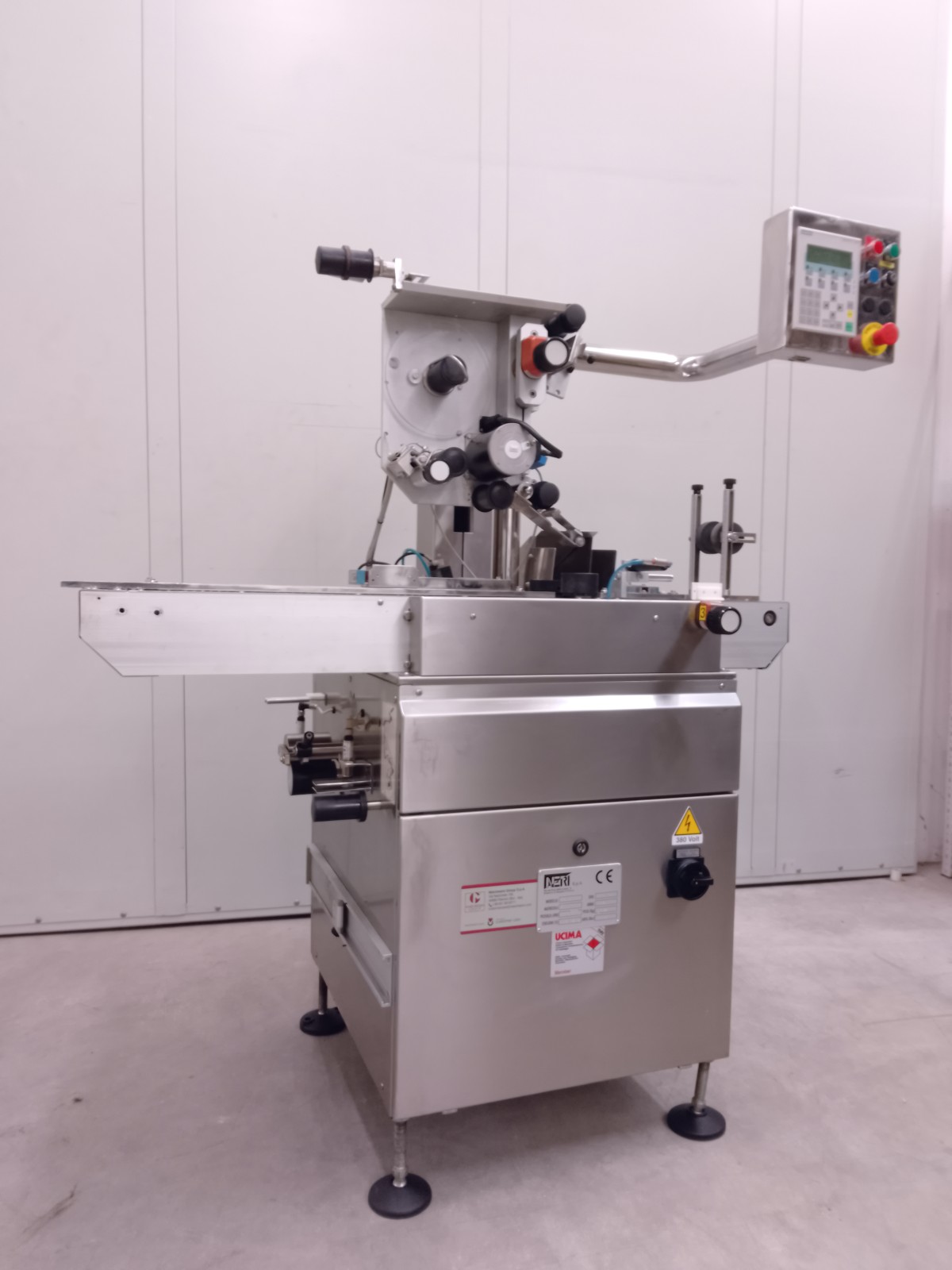 Machine à étiqueter automatique pour l’application d’étiquettes sur des produits.