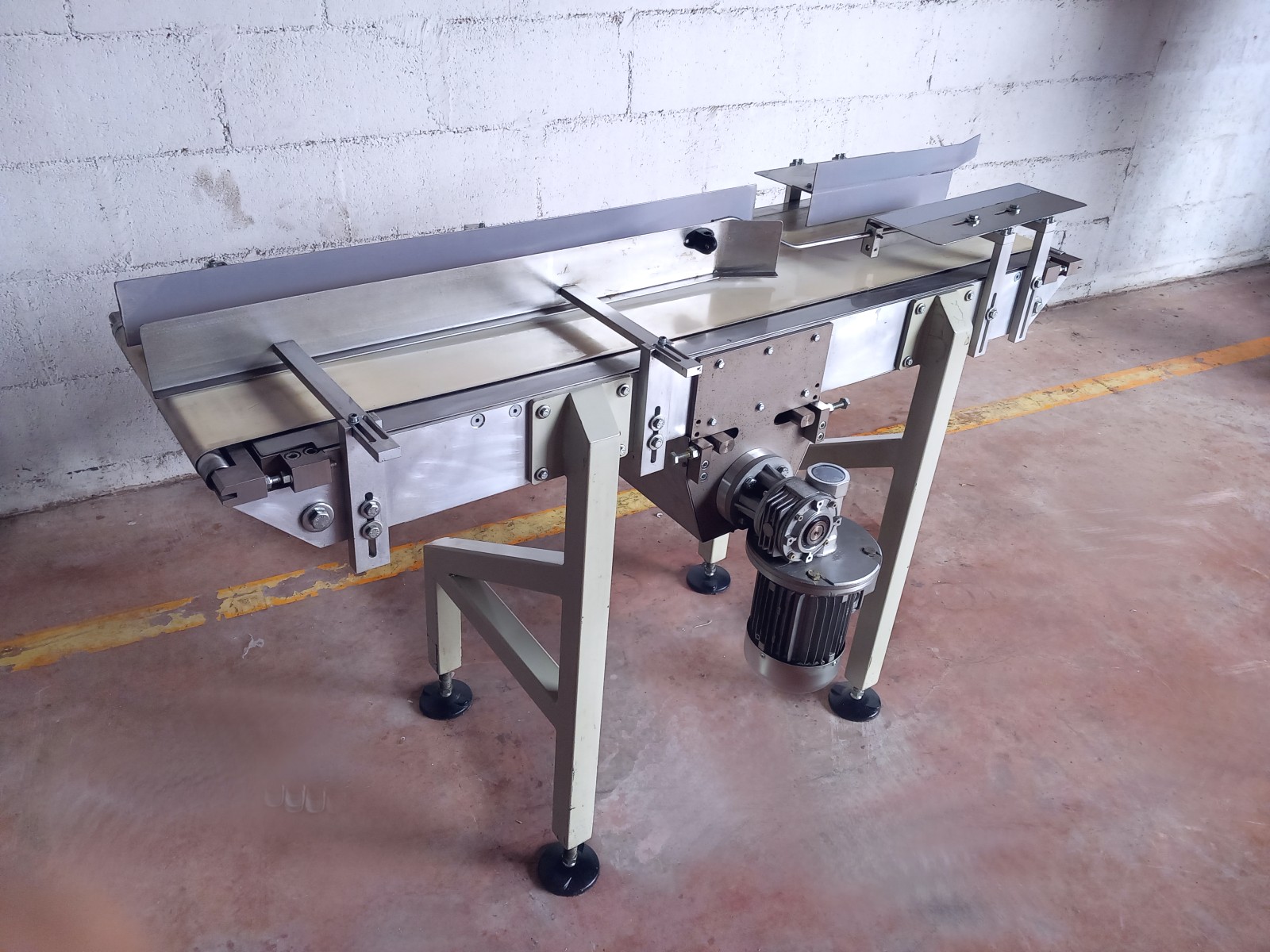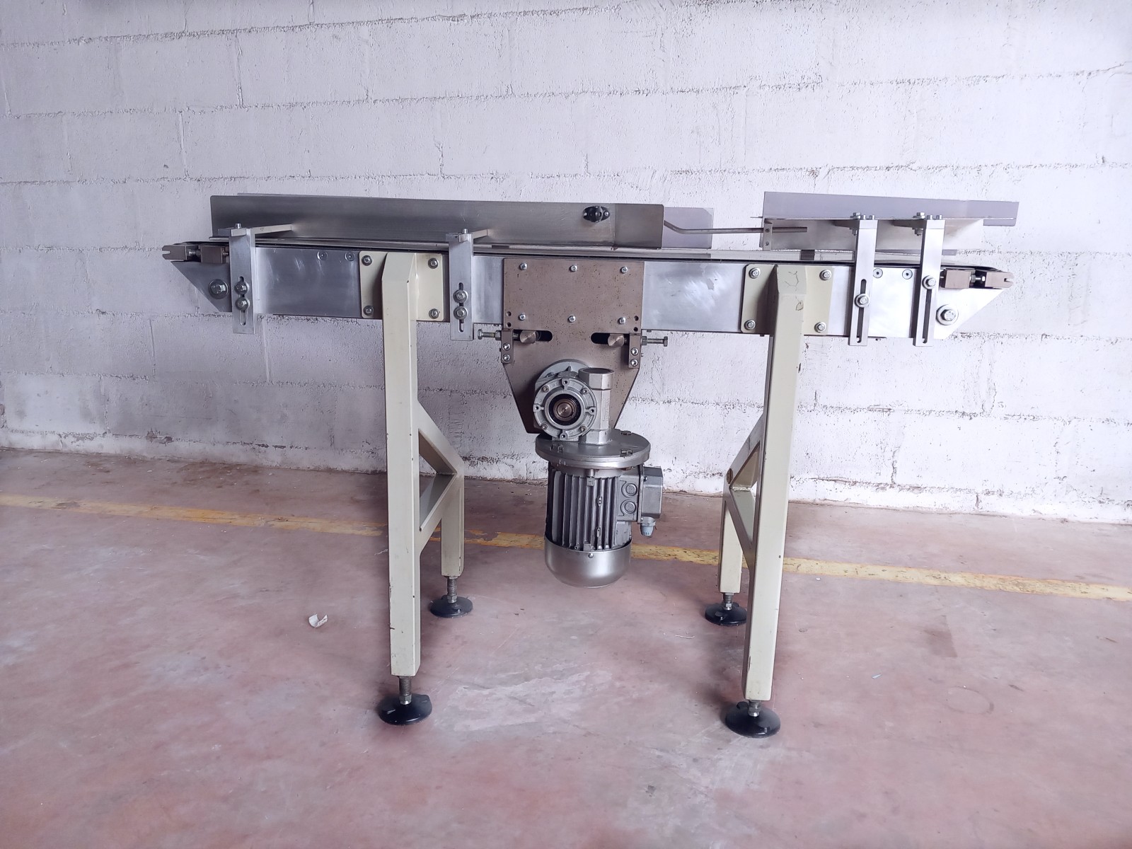 The conveyor belt ensures the continuous transfer over time of the material or materials loaded on its upper part. The belt receives and contains the transported material while transmitting the necessary force for load movement. At the ends, this belt wraps around itself, creating an endless closed loop that allows for continuous material transport without stops. This stainless steel conveyor belt is equipped with a plastic belt, complete with side rails, feet that ensure stability to the machine and transported goods, and an electric motor for movement.