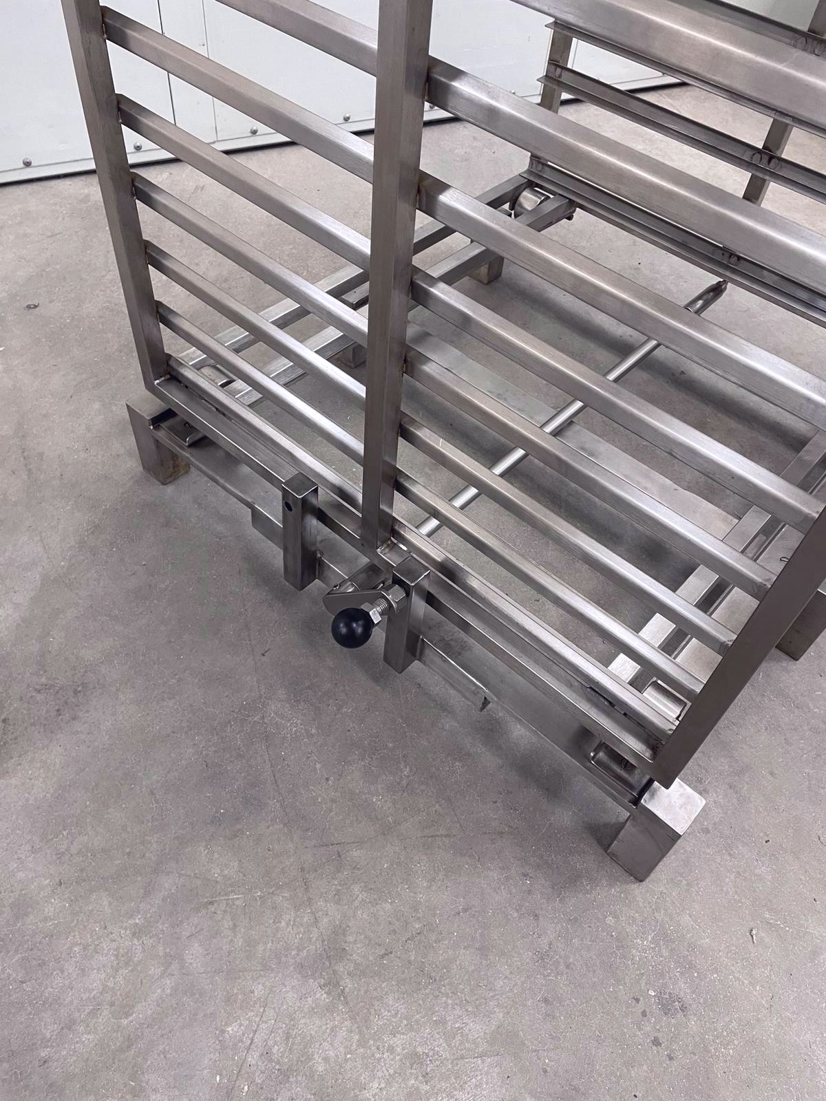 System consisting of stainless steel oven racks combined with 2 transport carts.