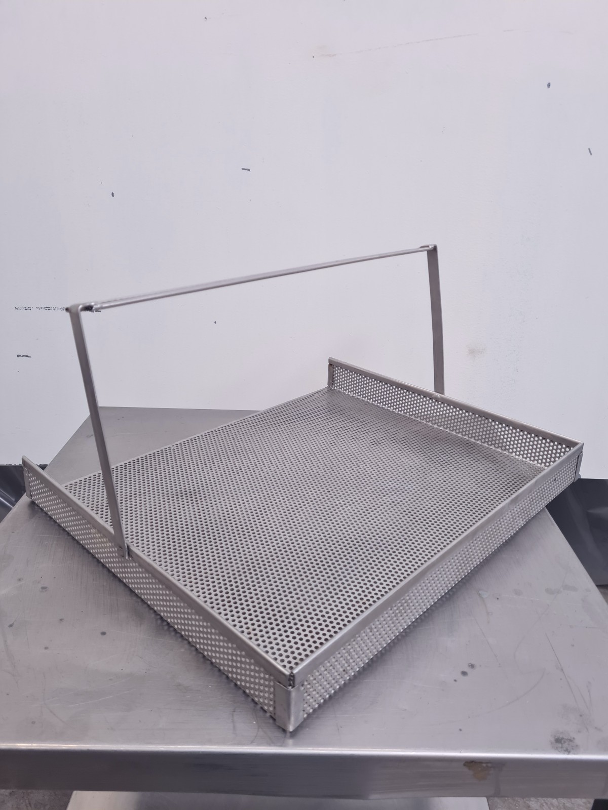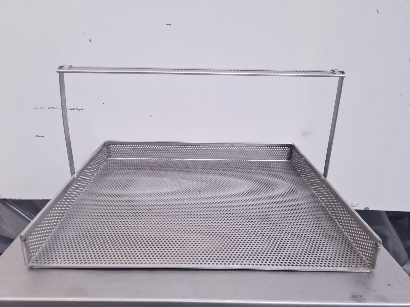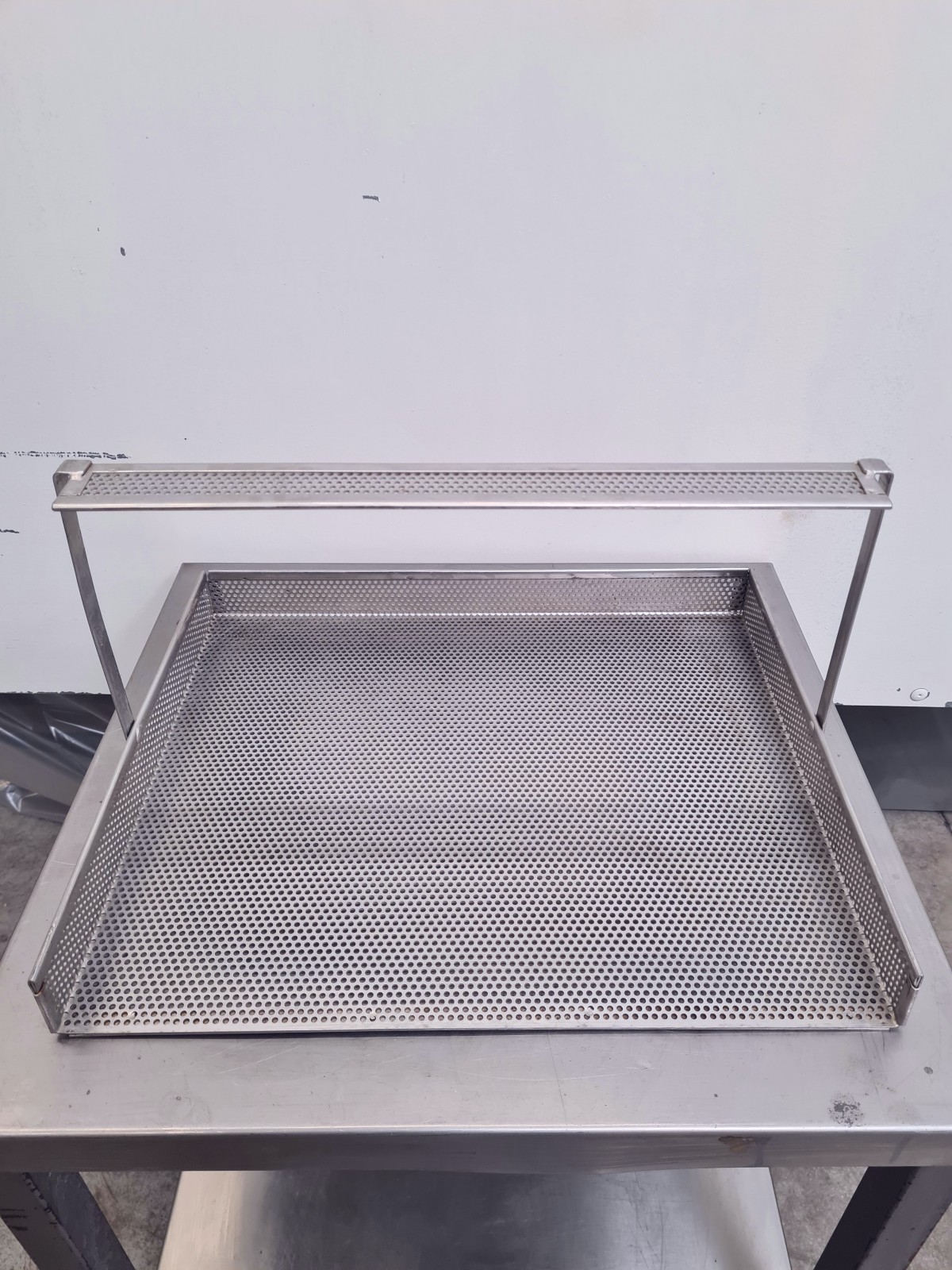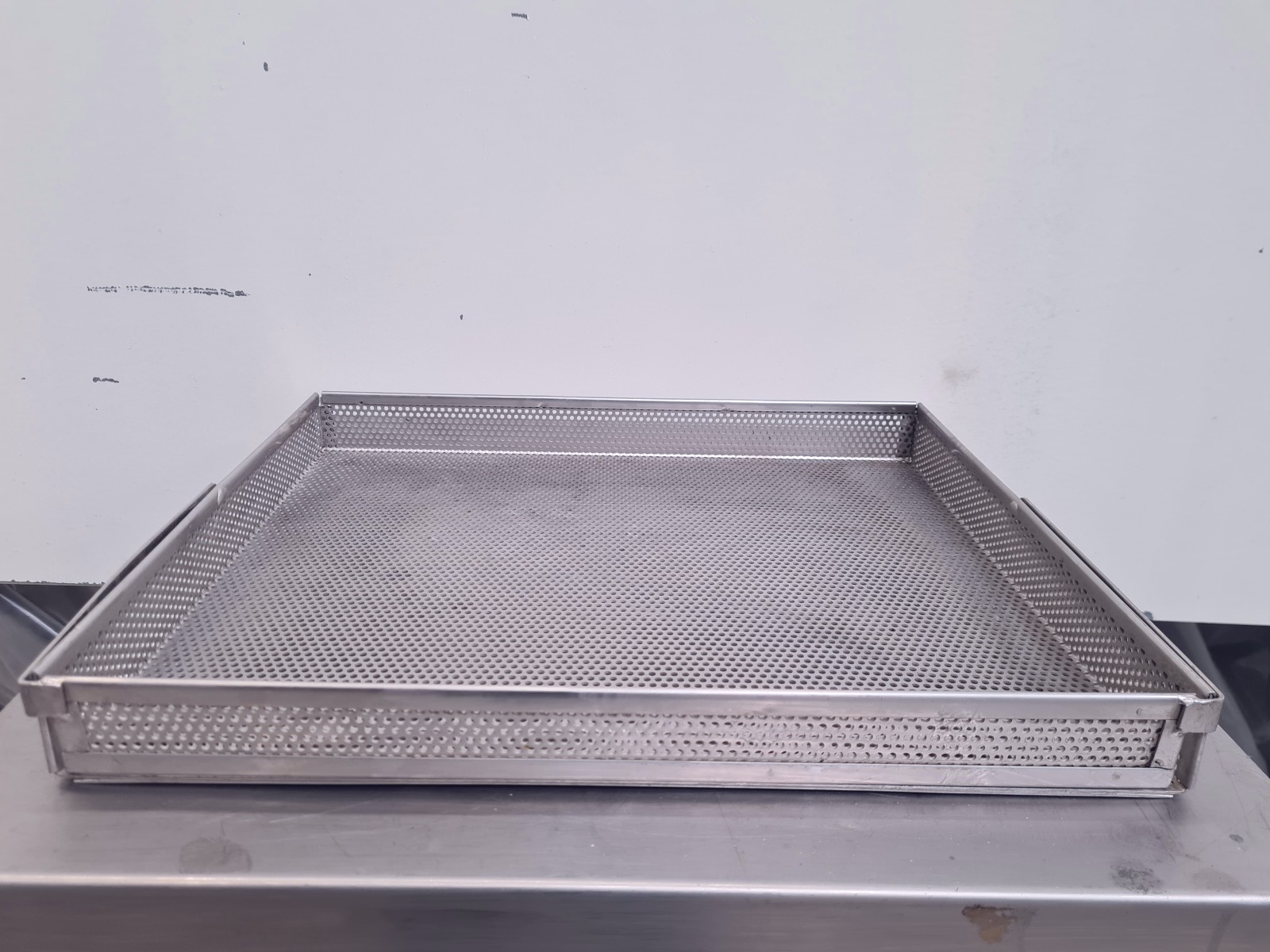 The oven racks are made of stainless steel and specifically designed for use in cooking, drying, or thermal treatment processes in industrial and food applications. Their structure features a perforated surface that allows optimal air circulation and even heat distribution, enhancing the efficiency of the production process. Reinforced perimeter edges ensure stability and durability, while the upper frame with integrated handle facilitates manual handling and insertion/removal from oven chambers. They are a robust and functional solution suitable for production environments requiring hygiene, durability, and operational practicality.