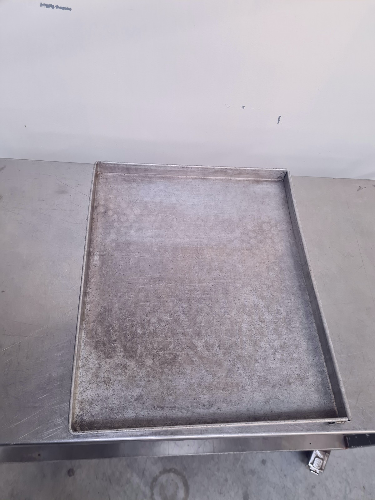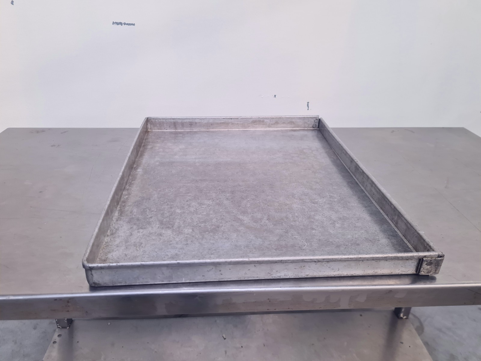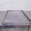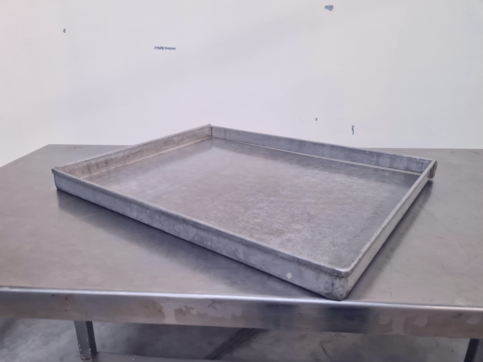 Stainless steel oven trays with a solid bottom.