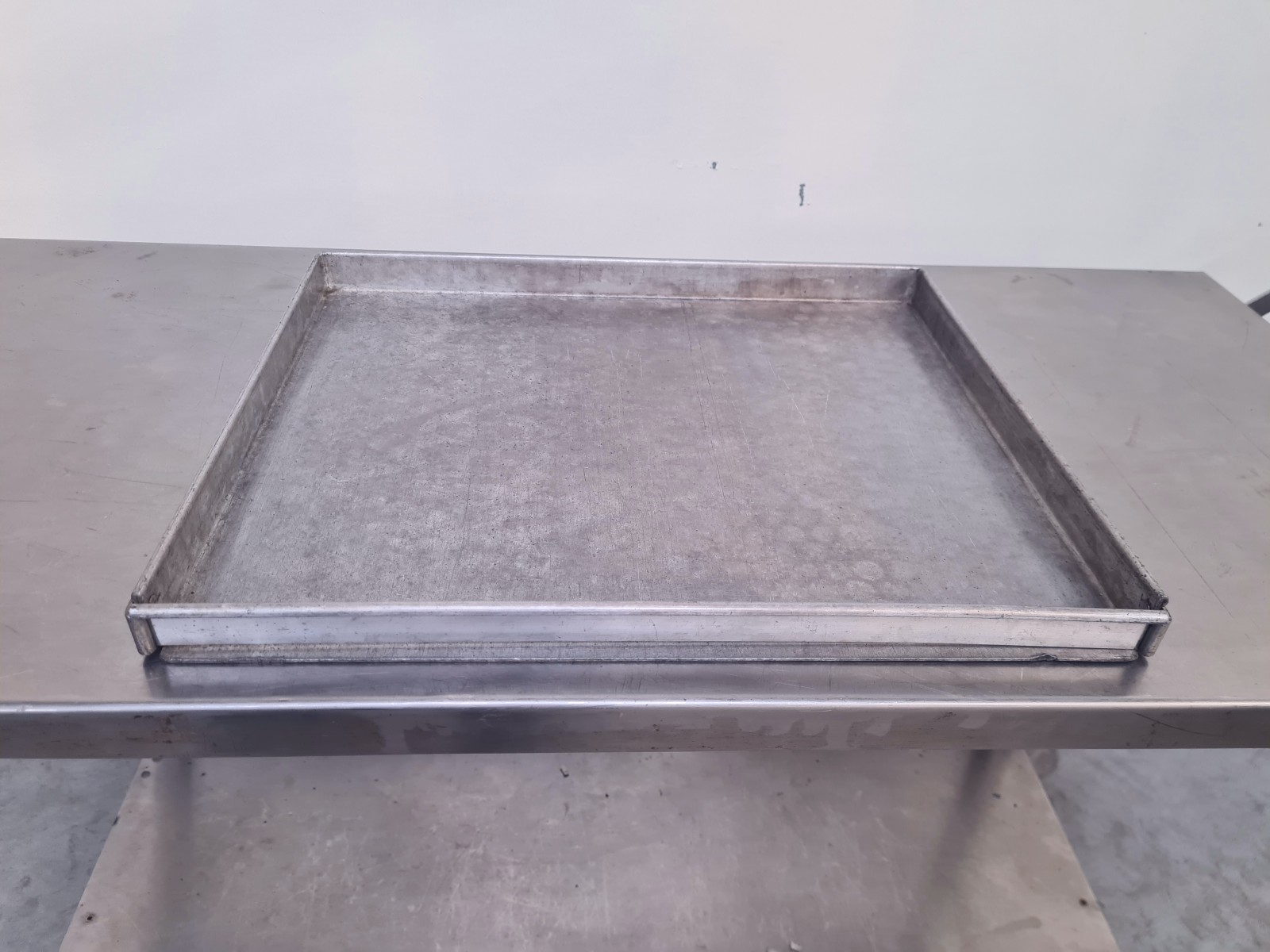 The trays are suitable for cooking, drying, or thermal treatment processes of products that require a continuous surface. The structure is made from robust sheet metal with raised and reinforced perimeter edges designed to contain the material and prevent spillage during handling or processing. The solid bottom allows for uniform heat distribution by contact, making it particularly suitable for semi-finished products or materials that should not pass through the surface. The solid construction ensures mechanical strength and stability even under load. The stainless steel construction ensures high hygiene standards, ease of cleaning, and corrosion resistance, making these trays suitable for industrial and food contexts where operational reliability and compliance with health requirements are essential.