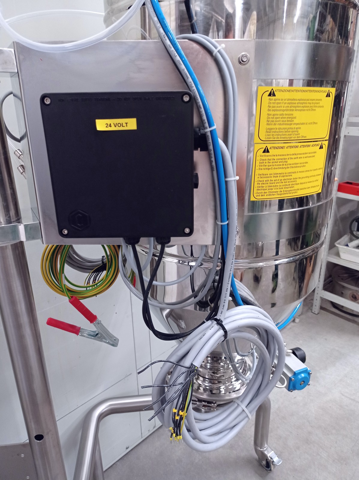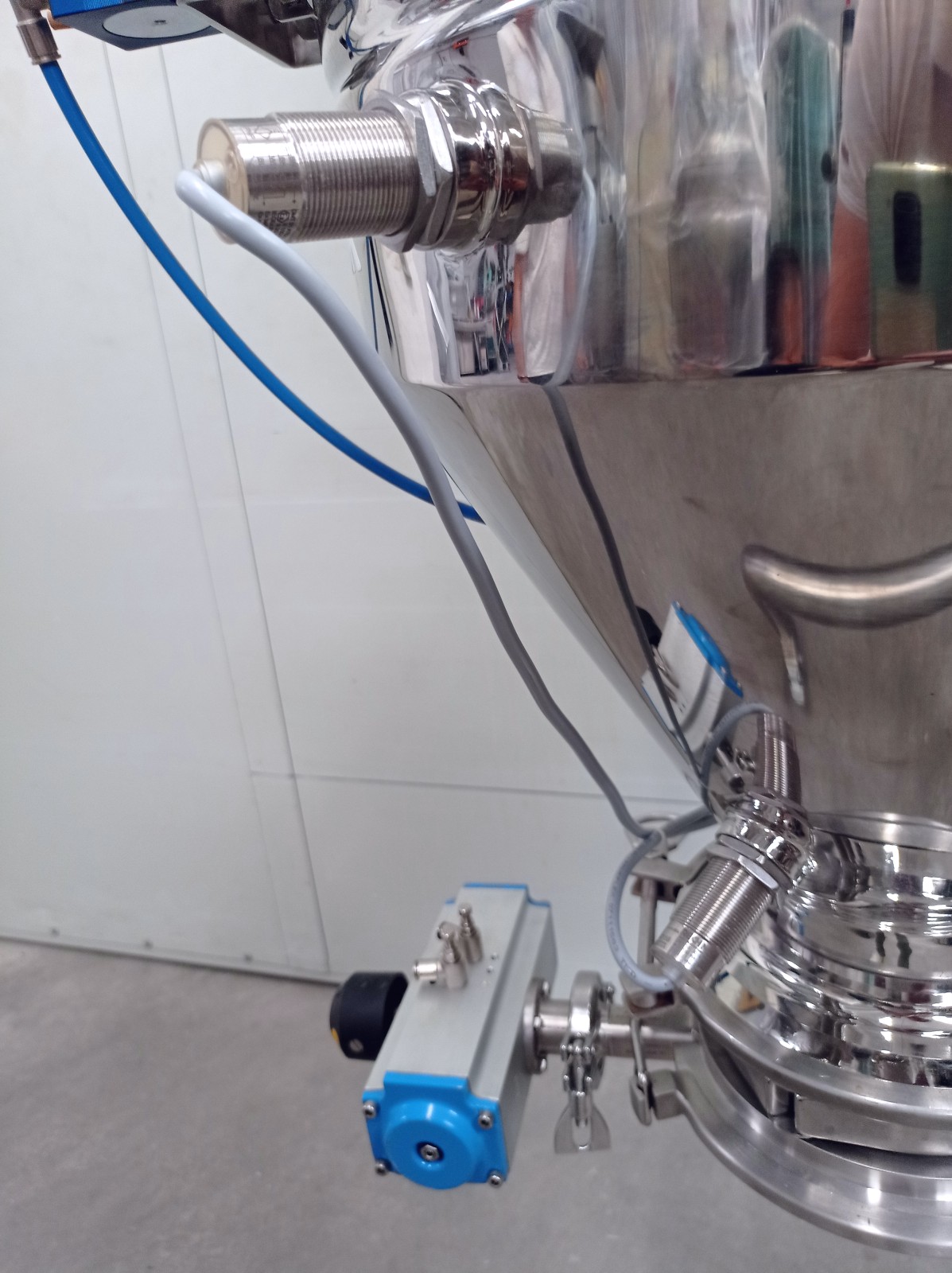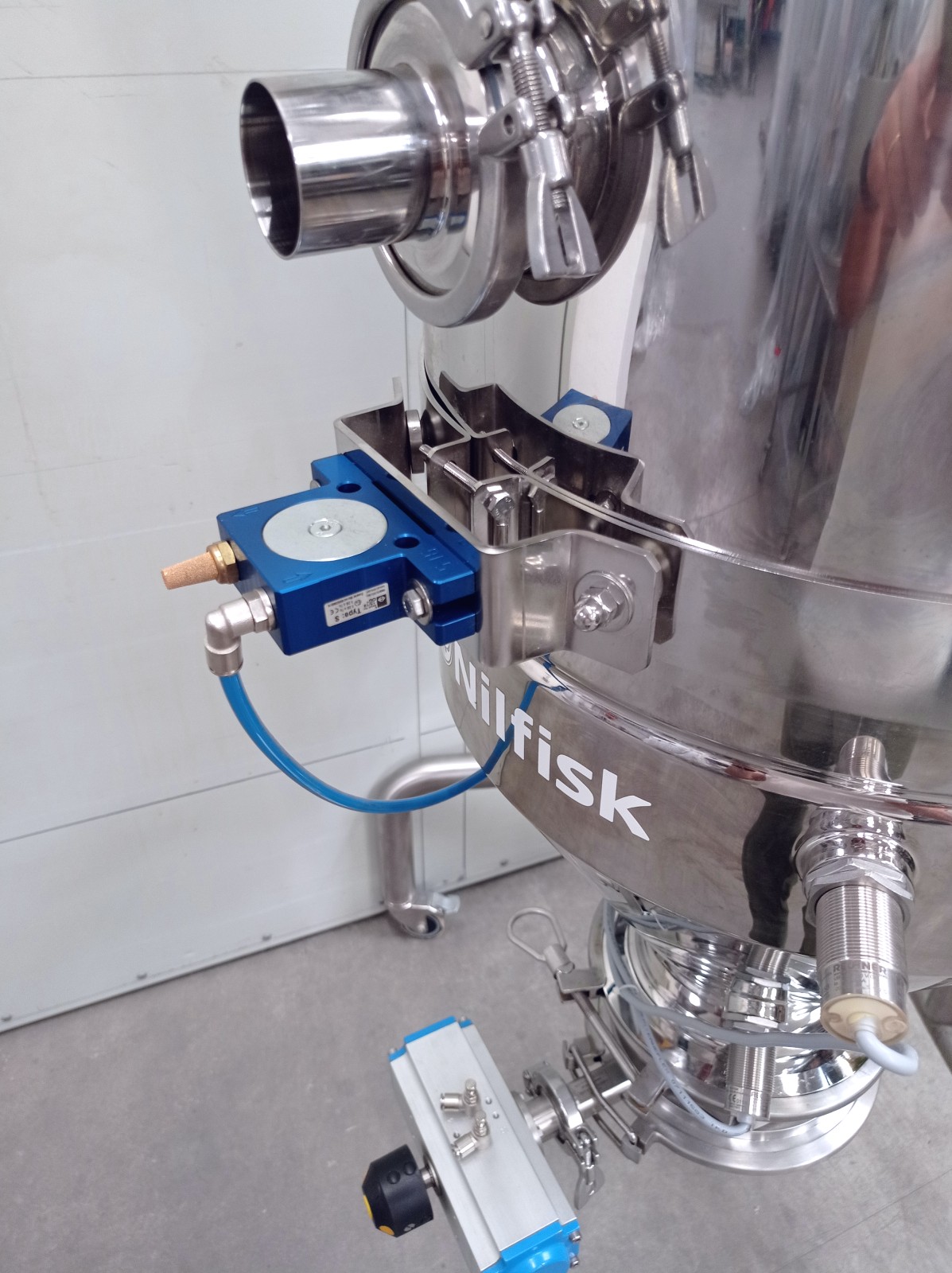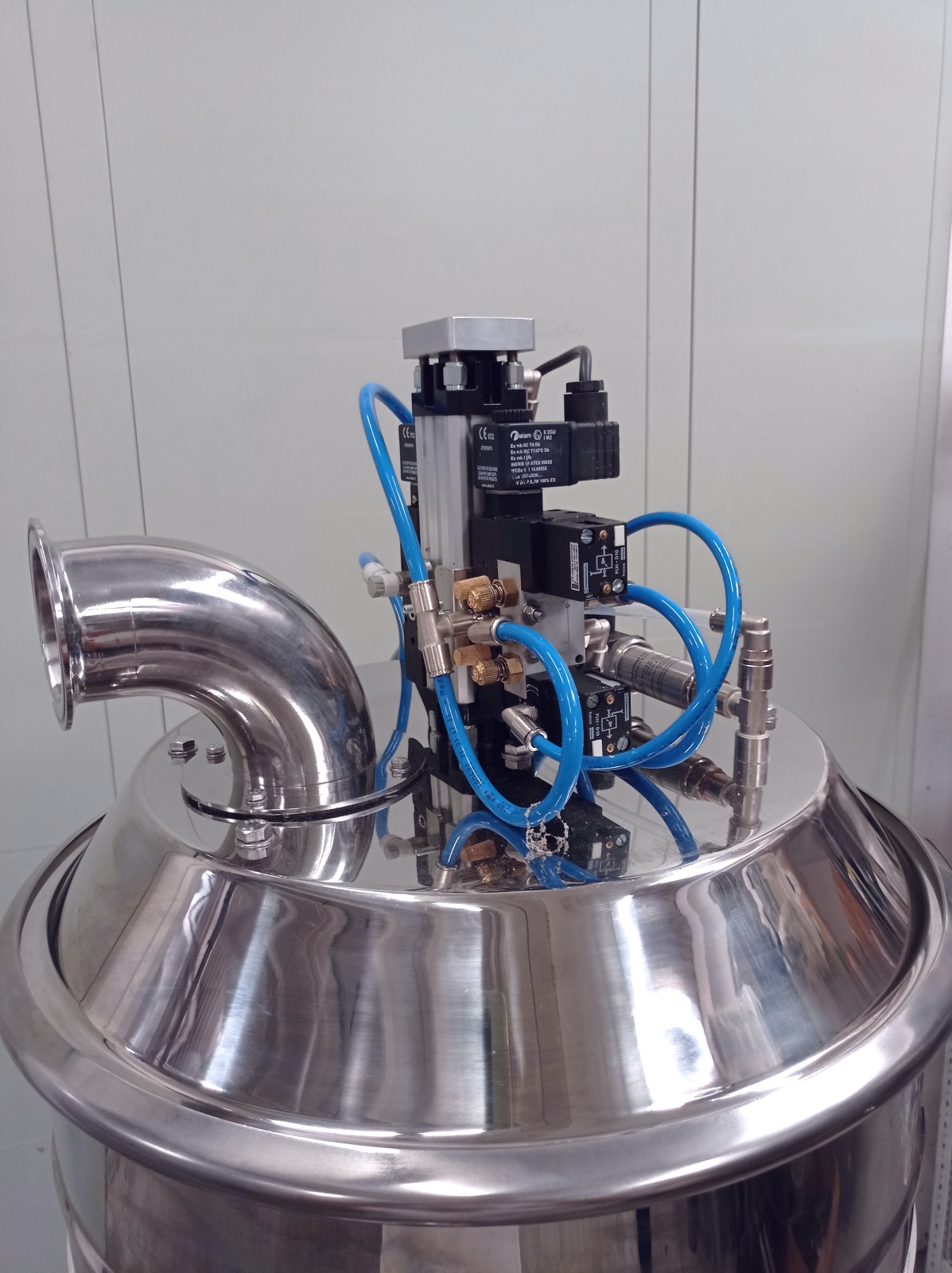 Pneumatic transport is a method by which solid materials can be transported by dragging bulk solids in an air system within a pipeline. By using a vacuum pump to remove air from a pipeline, a negative pressure is established. Positioning a nozzle in a particulate material, incoming air will carry or push the particles inside and along the piping system. This type of system completely contains the transported material, resulting in a safe and hazard-free transfer of bulk materials. Additionally, the system can be used for storage, recovery, and measurement of a product with applications in many sectors. The unit is particularly suitable for the food and pharmaceutical industries as it is made of polished stainless steel. Air/electrovalve powered.