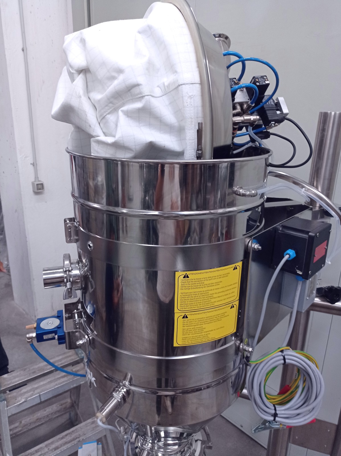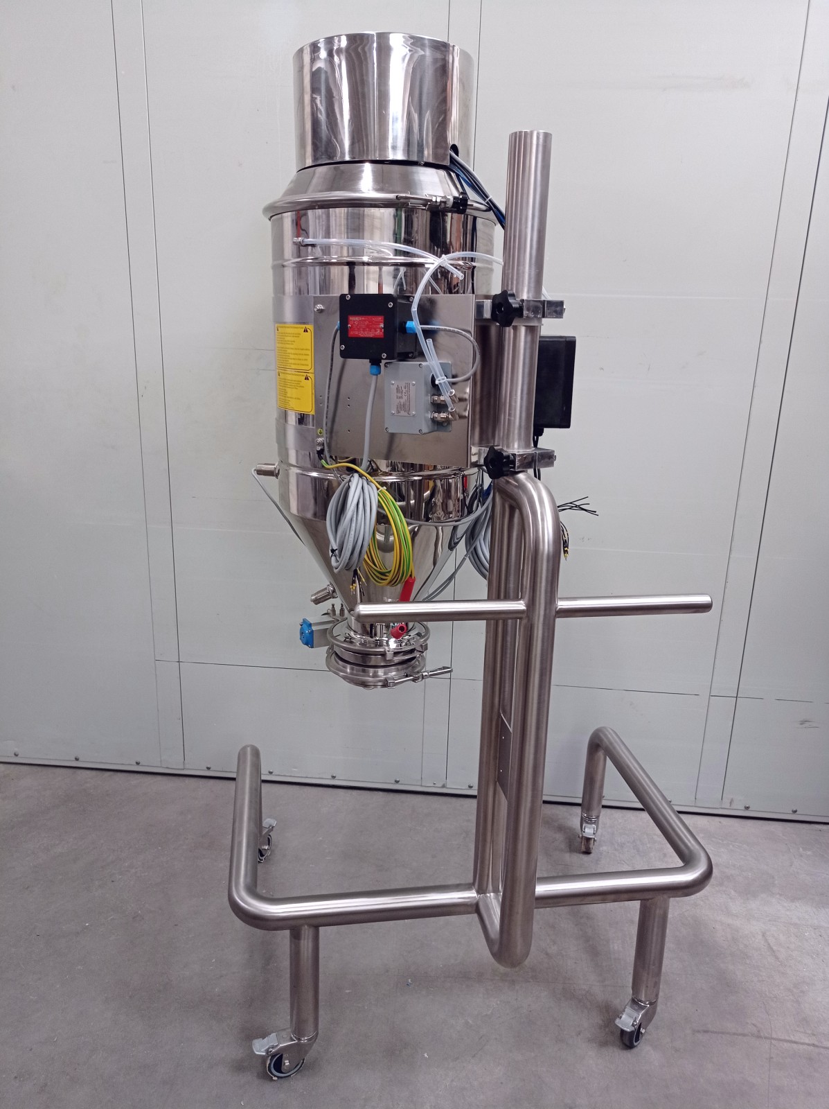 Stainless steel powder and bulk granular material transfer machine.