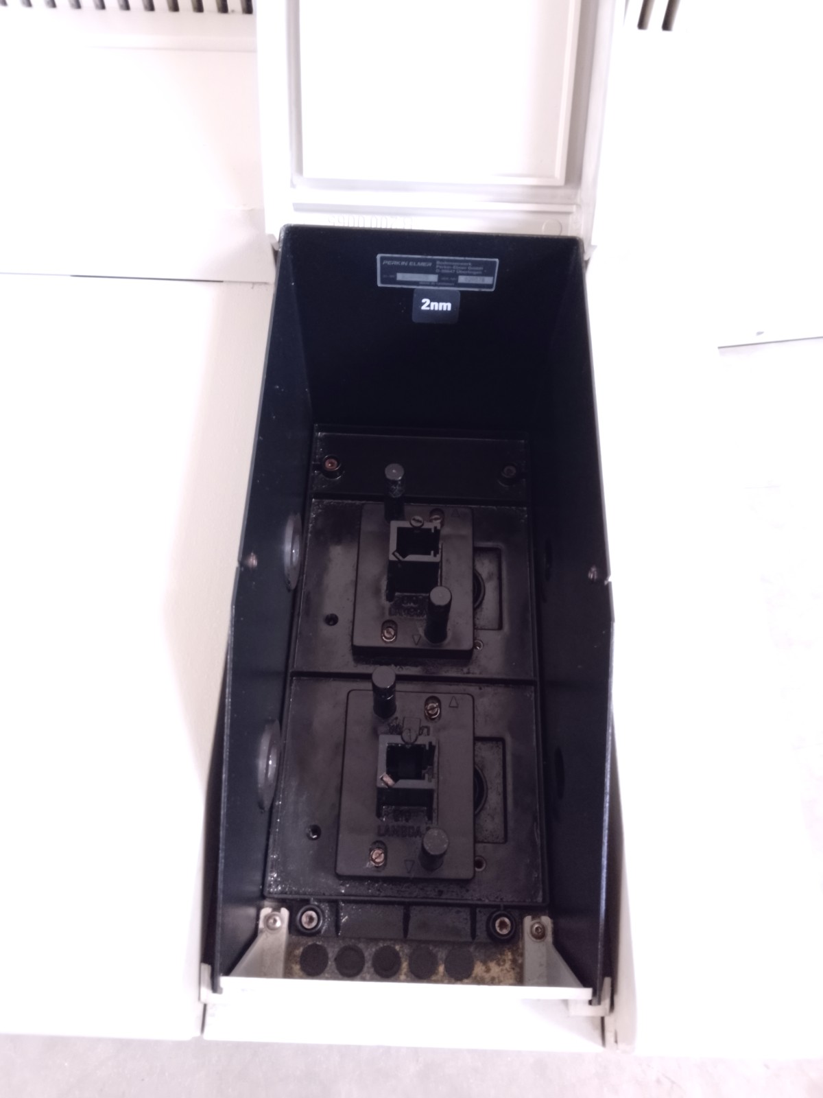 The Perkin Elmer Lambda 20 UV-Visible spectrometer is an analytical laboratory instrument designed for spectrophotometric analysis in the ultraviolet and visible range. This model is known for its operational reliability, measurement stability, and ease of use, making it suitable for both quality control and research and development environments. It allows for the quantitative and qualitative determination of substances through absorbance, transmittance, and concentration measurements. Its robust structure and established optical system ensure good analytical performance over time. The front interface with an integrated display and keyboard allows for direct management of operational functions. It is prepared for integration with computer systems and printers, facilitating the management of analytical data and traceability of measurements according to standard laboratory practices.