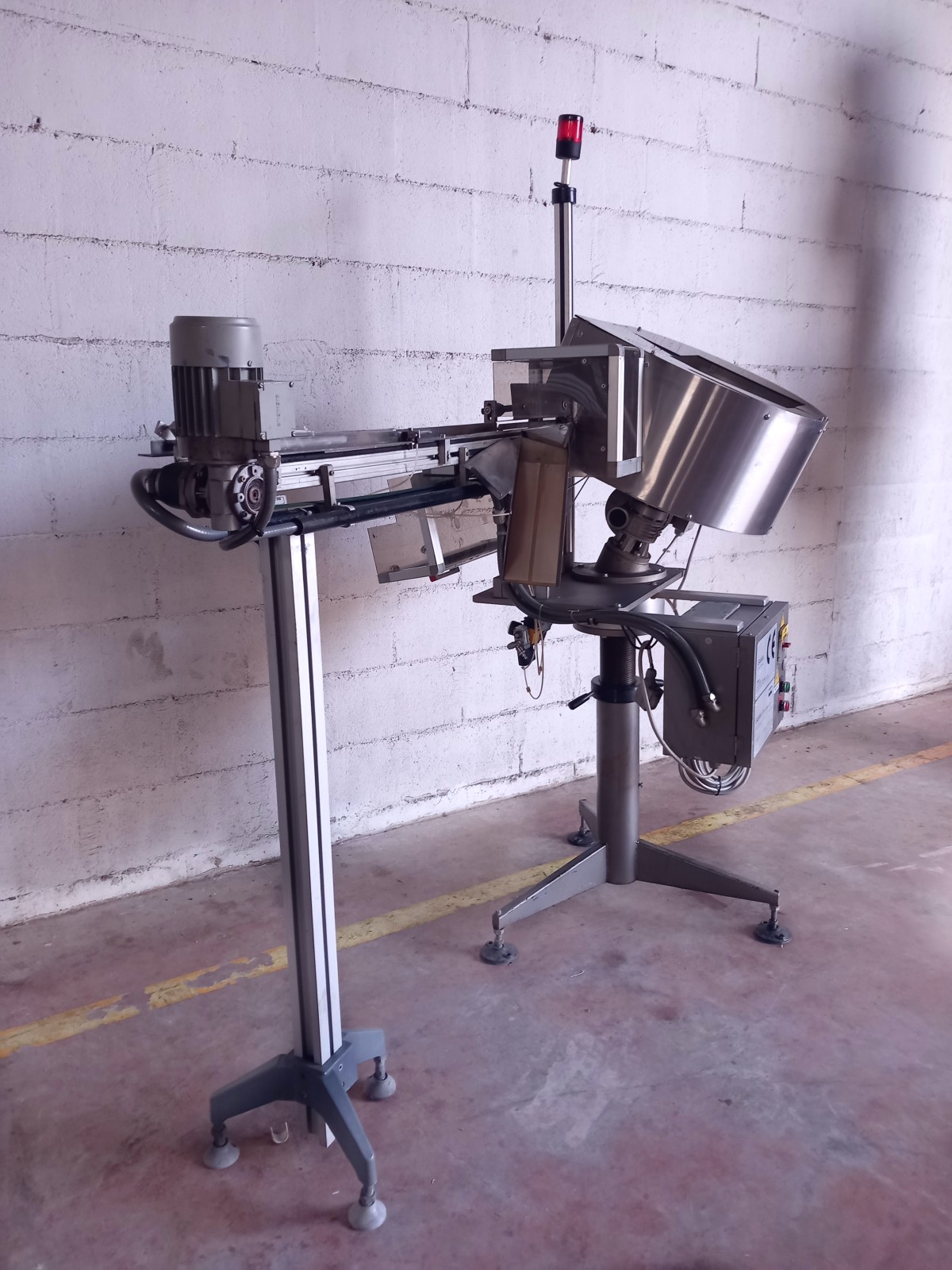 The unit facilitates rapid and reliable packaging during the processing of pharmaceutical products, personal hygiene, specialty chemicals, food, and others. The robust mechanical structure is entirely made of stainless steel, suitable for absorbing typical stress. Products are reordered at the entrance and oriented through selector cells. This system uses a rotating disk to move caps through the orientator. It is equipped with a protective cover for operator safety and ease of maintenance and cleaning. The unit comes complete with a conveyor belt and cap exit chute.