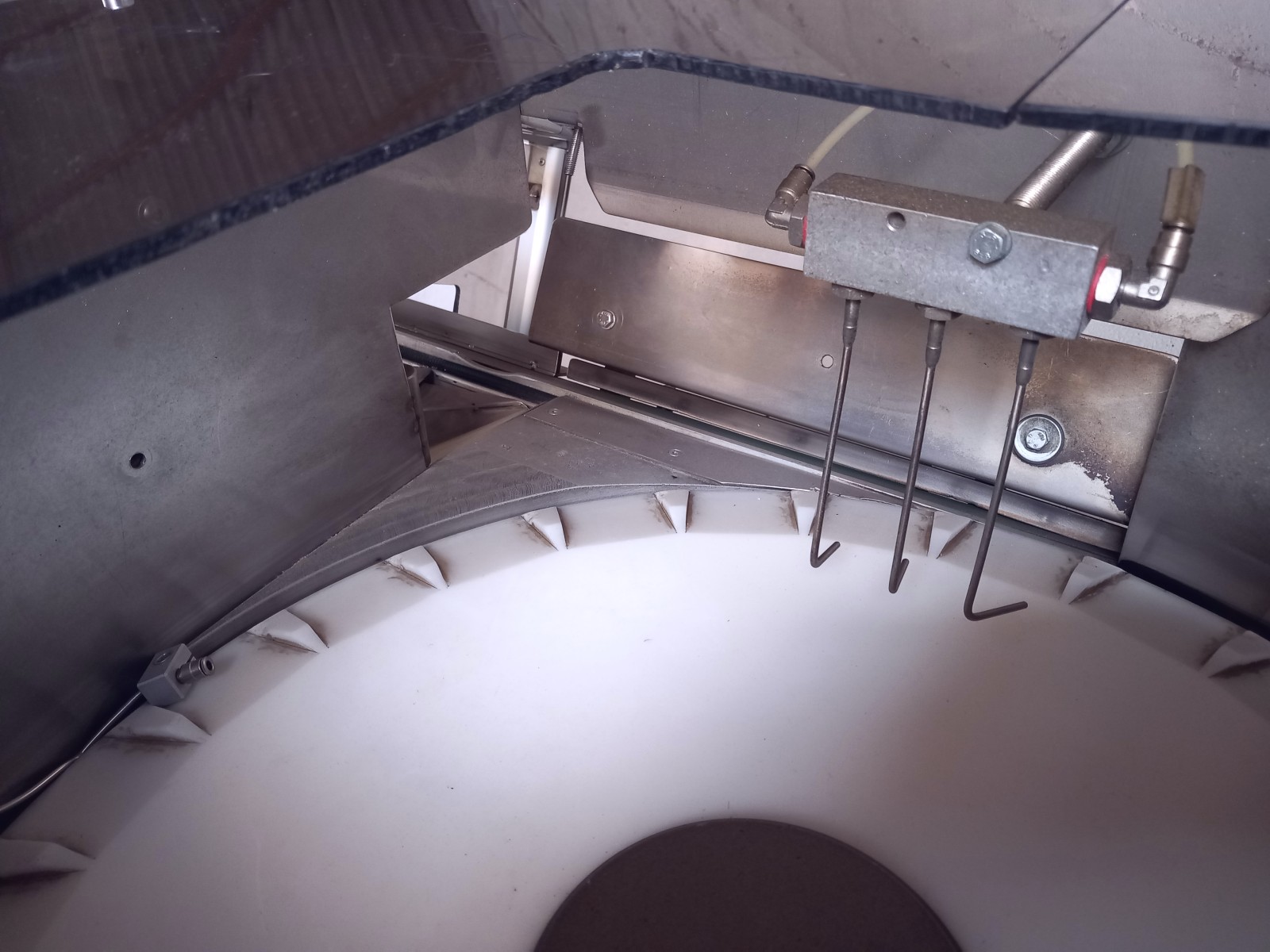Medium-sized cap and capsule orientator made of stainless steel.